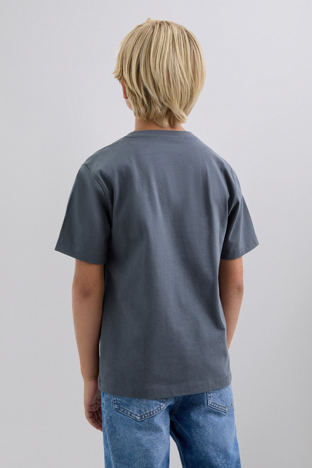 T-shirt made of 100% BCI cotton. Regular fit, short sleeves and round neck. Contrast print on front and bottom right side with embroidered logo.