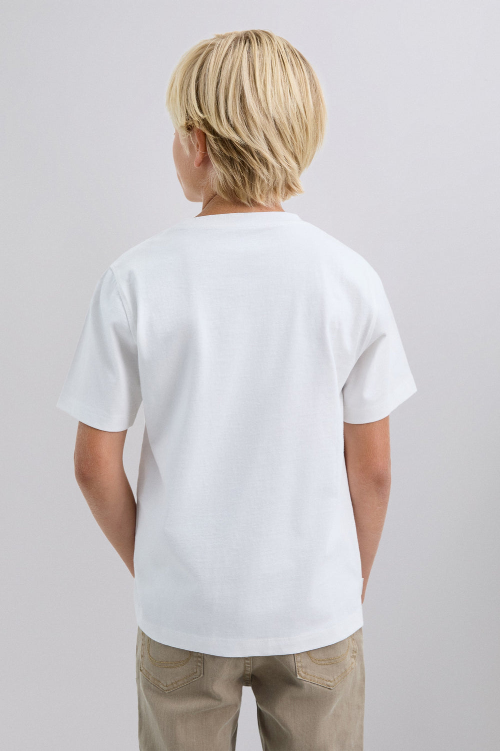 T-shirt made of 100% BCI cotton. Regular fit, short sleeves and round neck. Contrast print on front and bottom right side with embroidered logo.