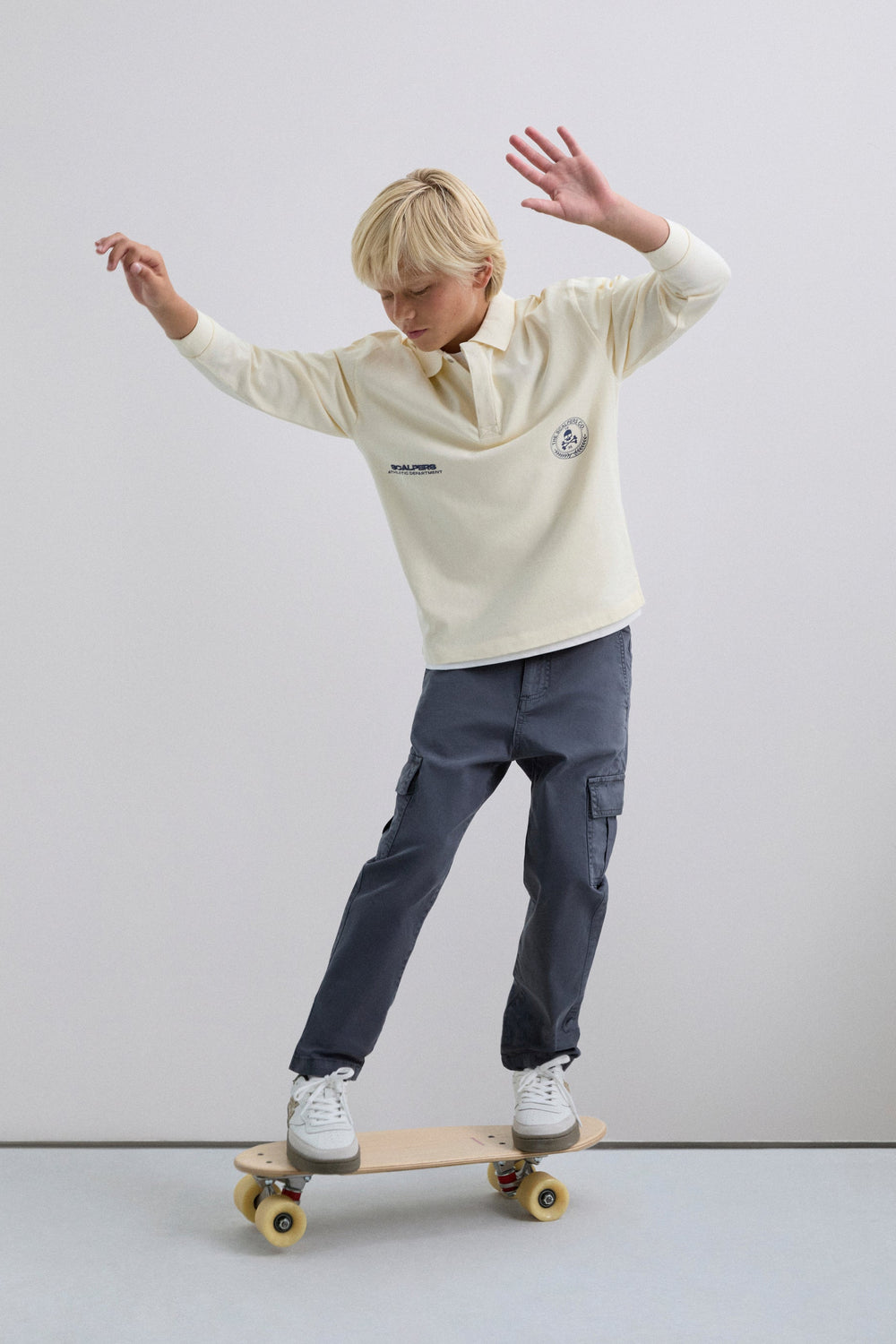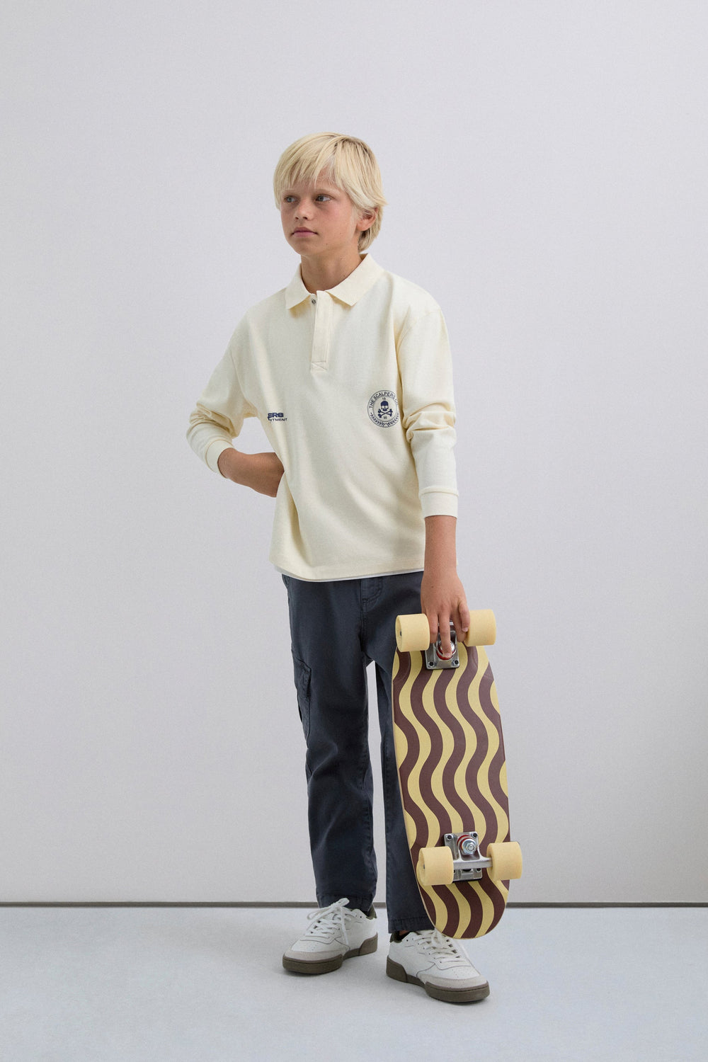 Polo shirt in 100% BCI cotton. Regular fit, classic buttoned collar and long sleeves. Front and back print with embossed logo and skull.