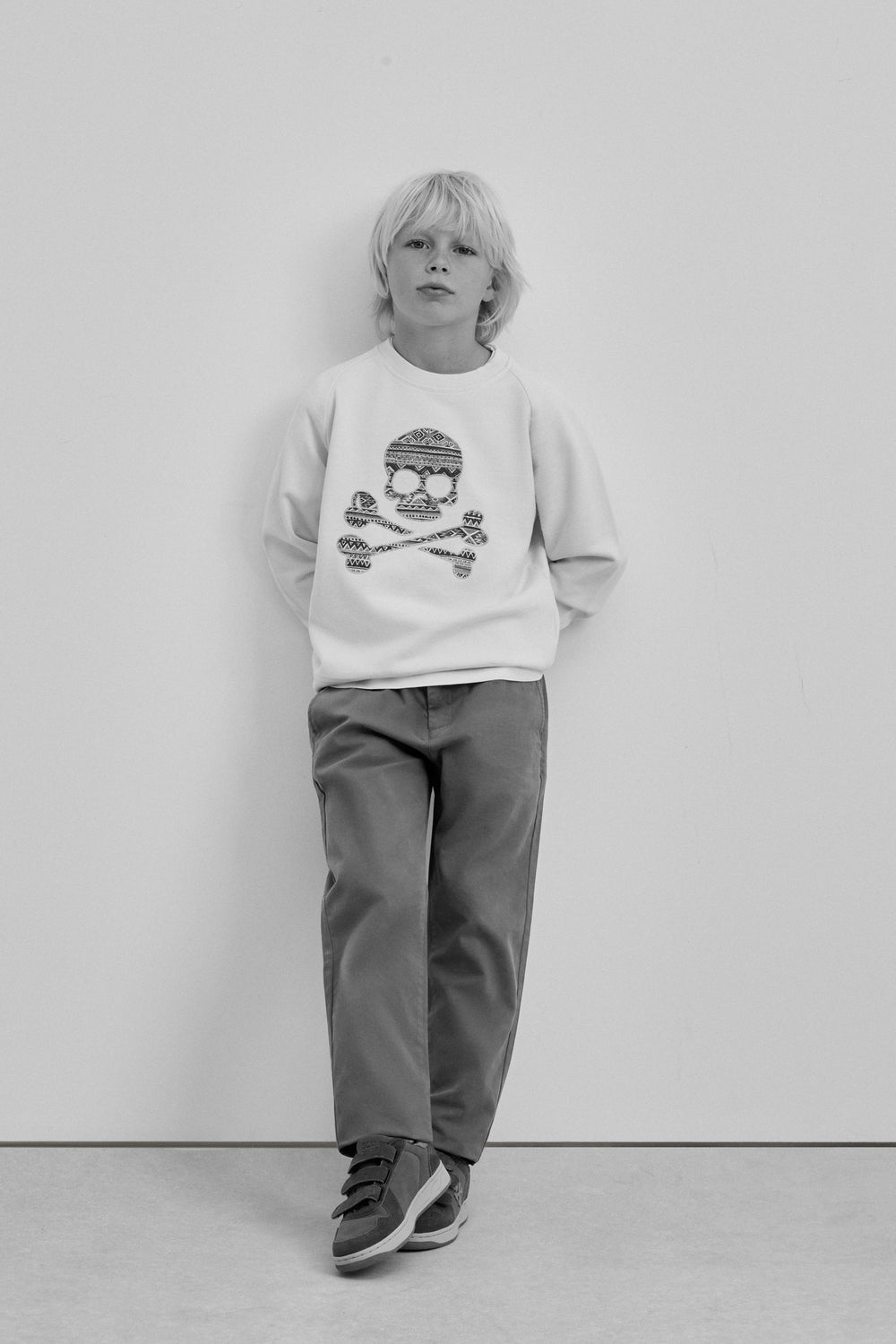 Sweatshirt made of 100% BCI cotton. Regular fit. Round neck. Long sleeves. Front skull print. Ribbed trim.