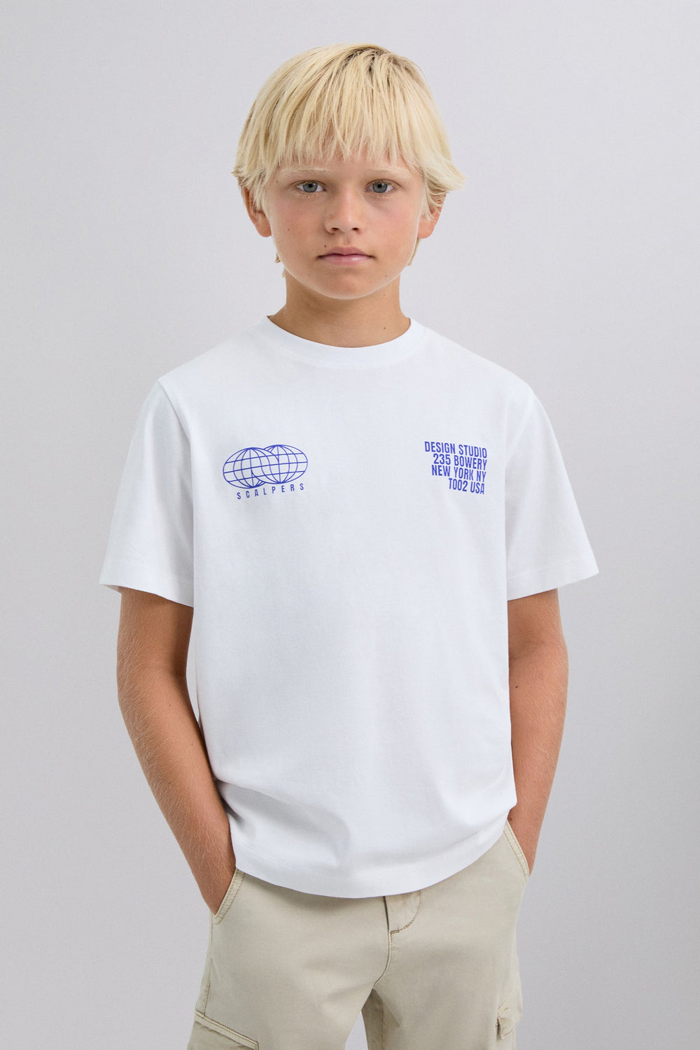 T-shirt made of 100% organic cotton. Regular fit, round neck and short sleeves. Back and front print with logo.