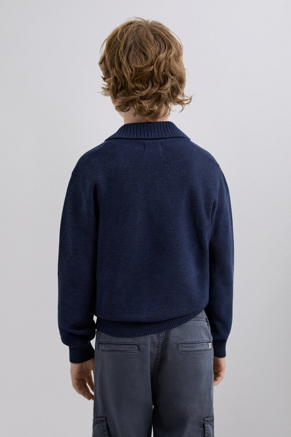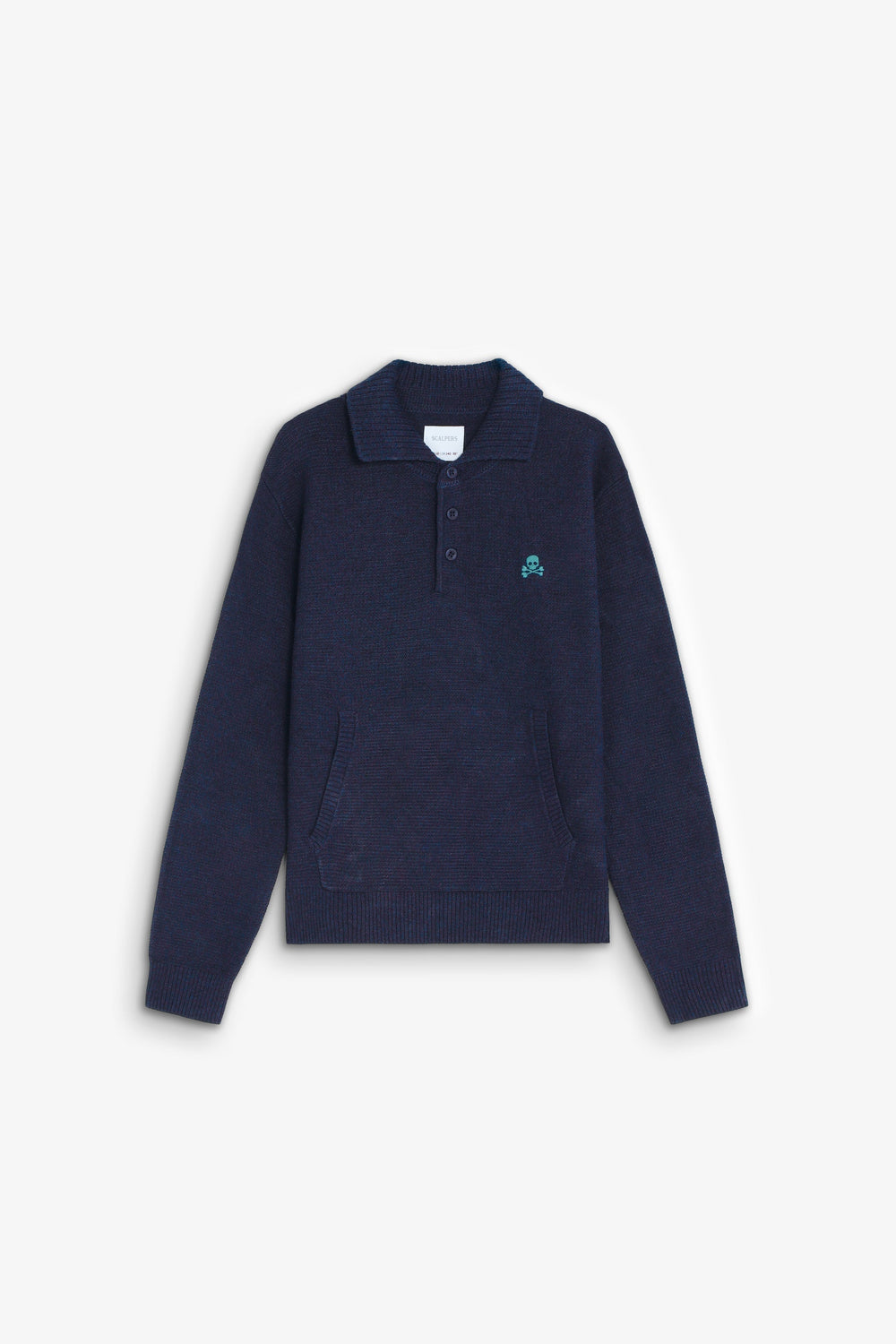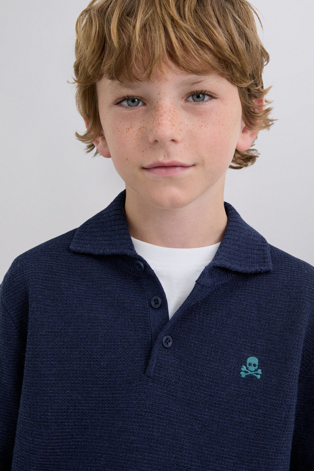 Knit sweater. Polo shirt collar. Long sleeves. Buttoned collar. Contrast embroidered logo.