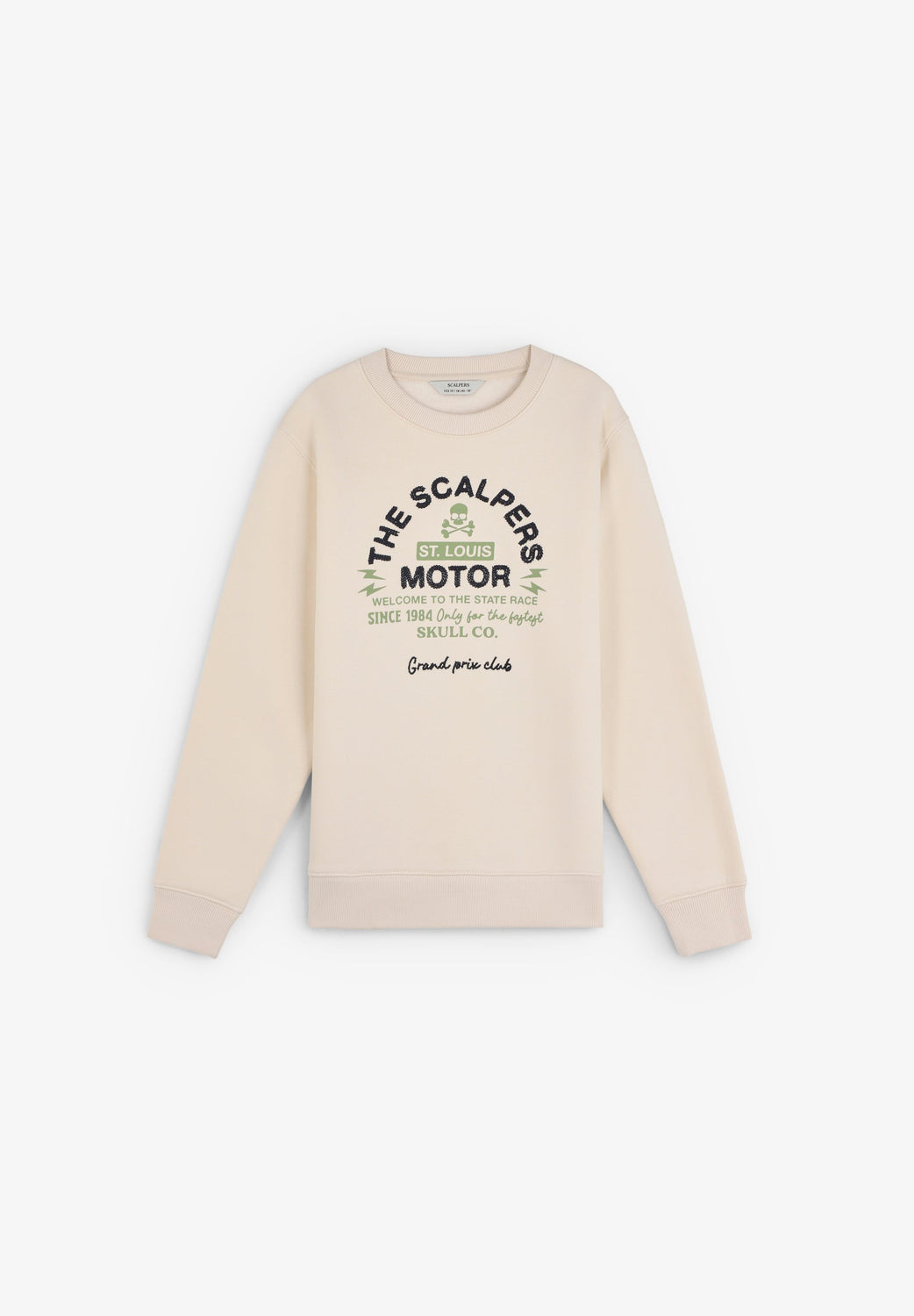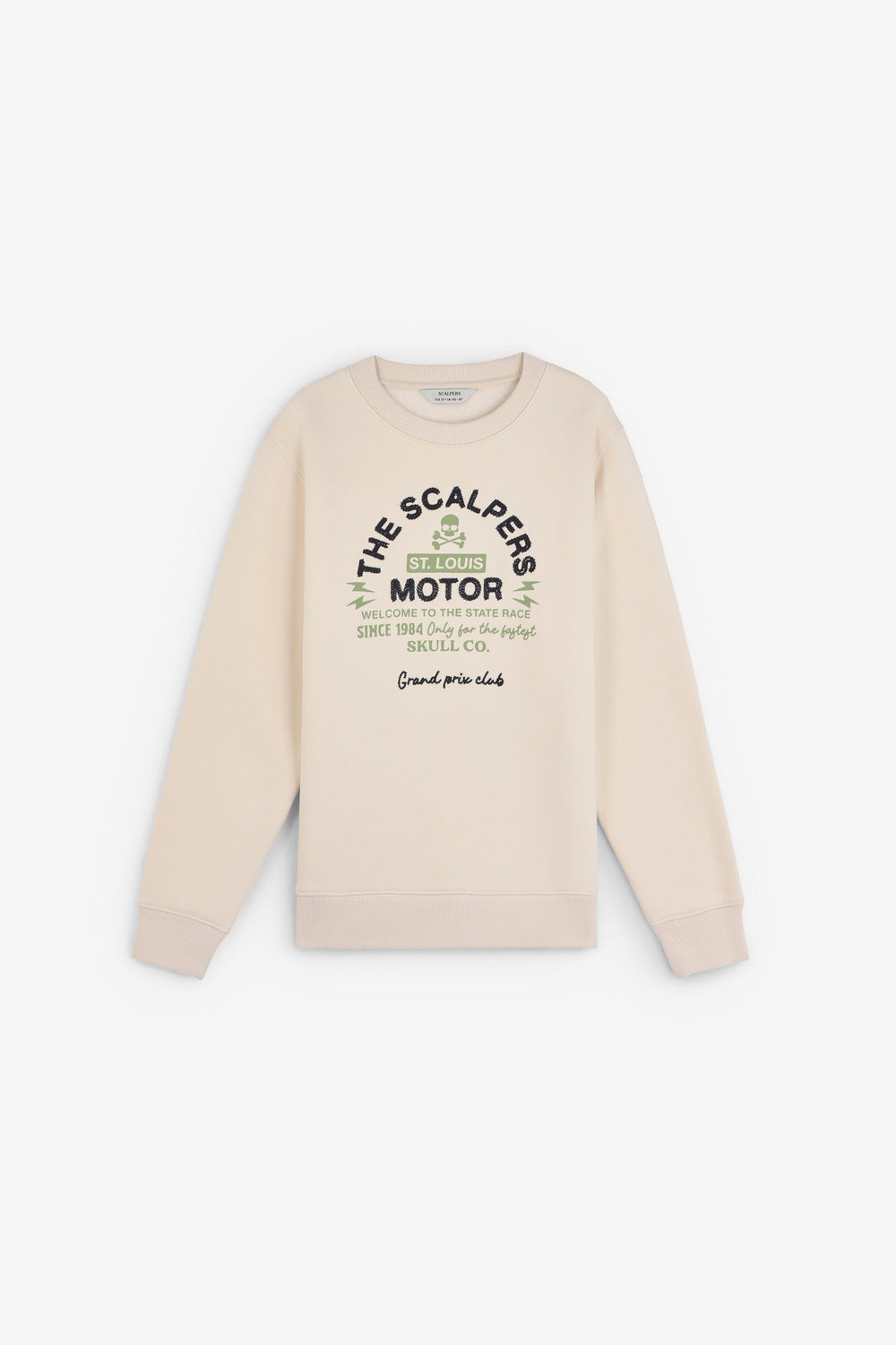 Sweatshirt made of a cotton blend. Round neck. Long sleeves. Regular fit. Contrast embossed print with logo in the centre. Ribbed trim.