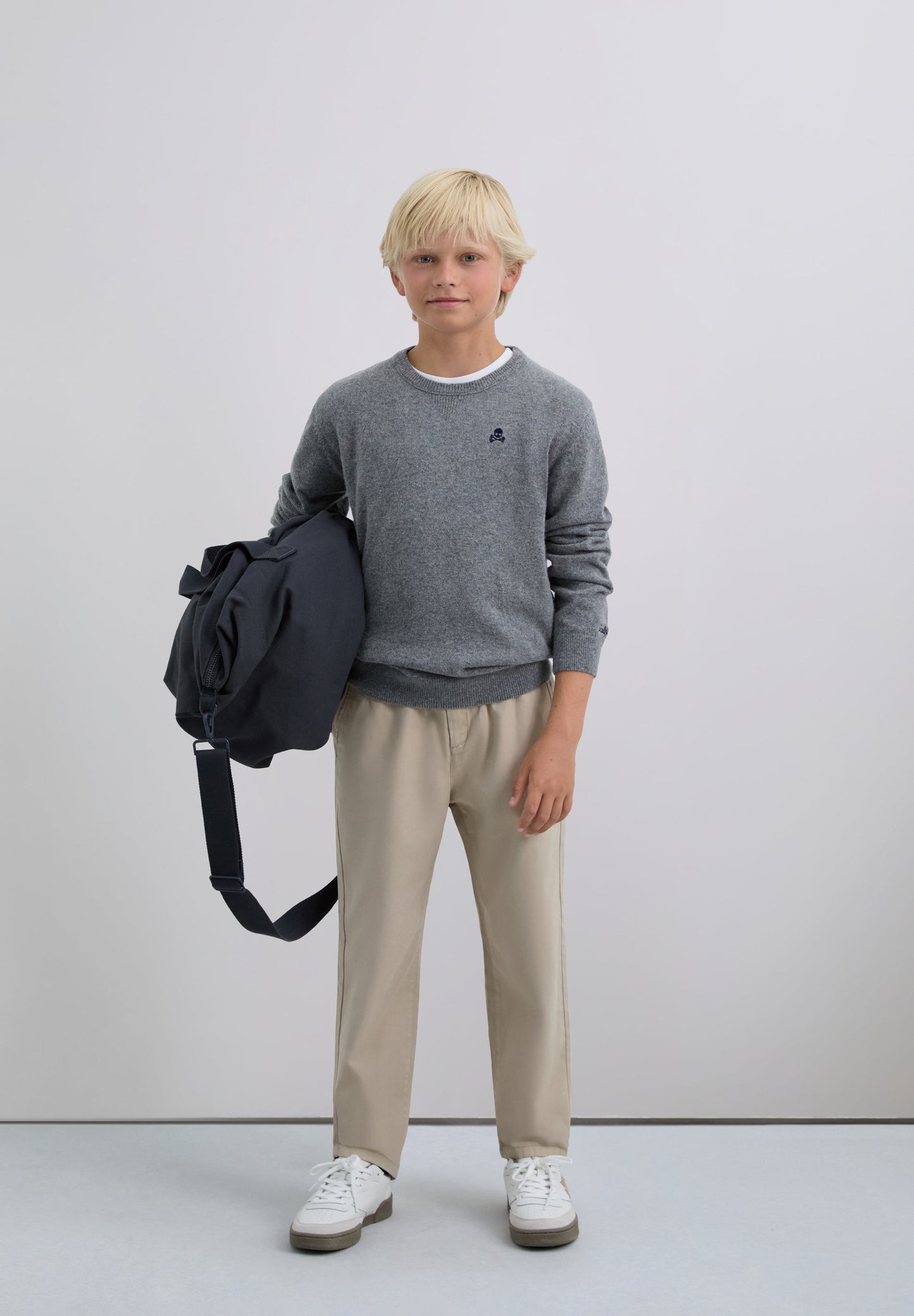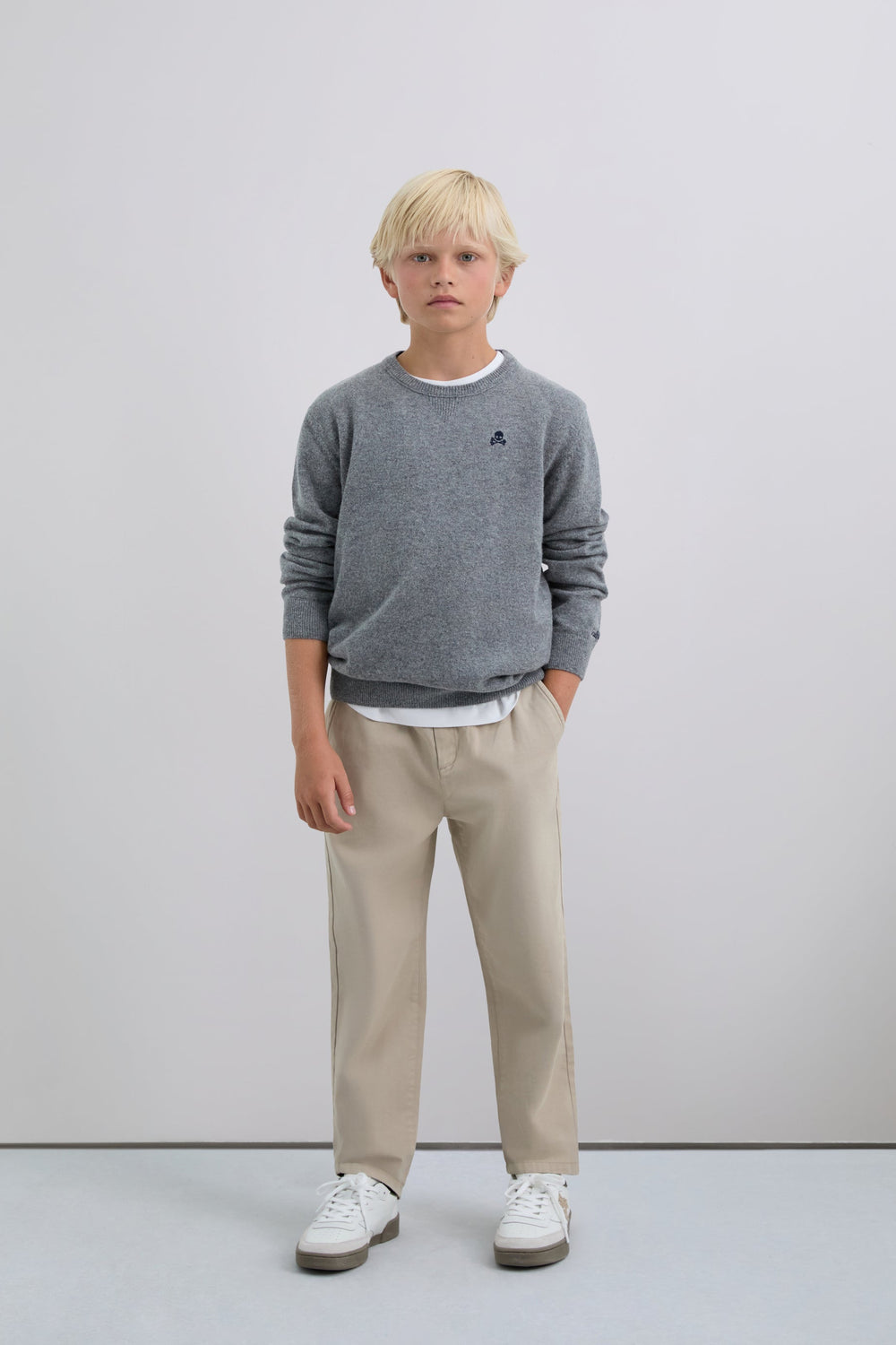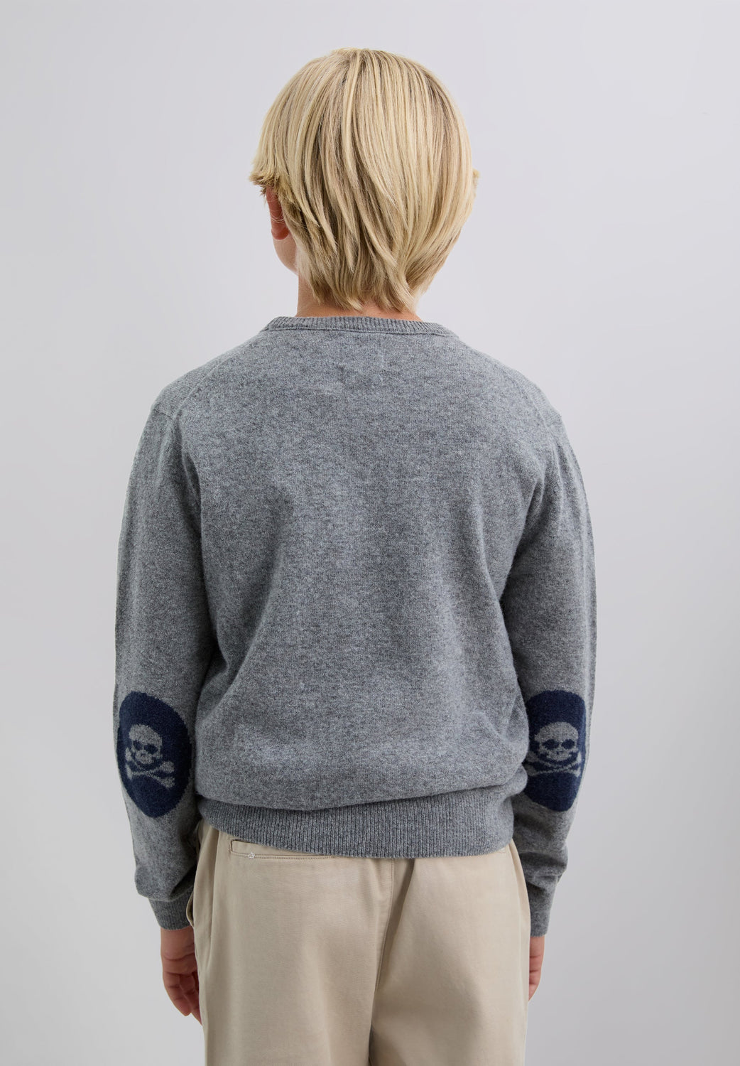Sweater made of wool and polyamide blend. Regular fit. Round neck. Long sleeves. Contrast embroidered skull detail. Ribbed trim. Skull patch detail on the elbow pads.