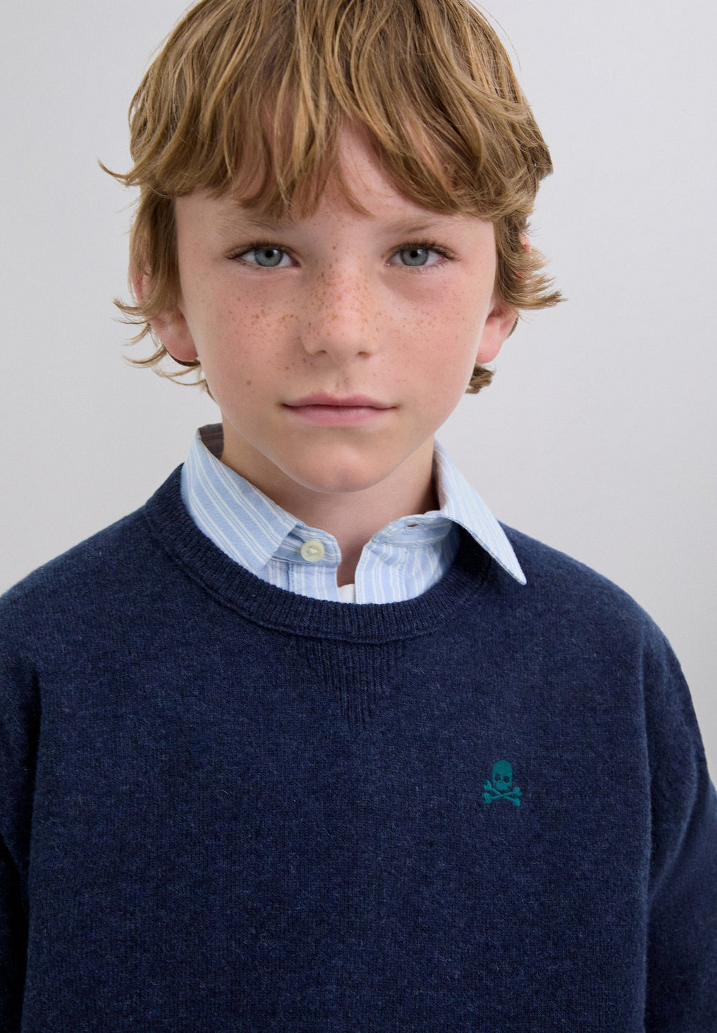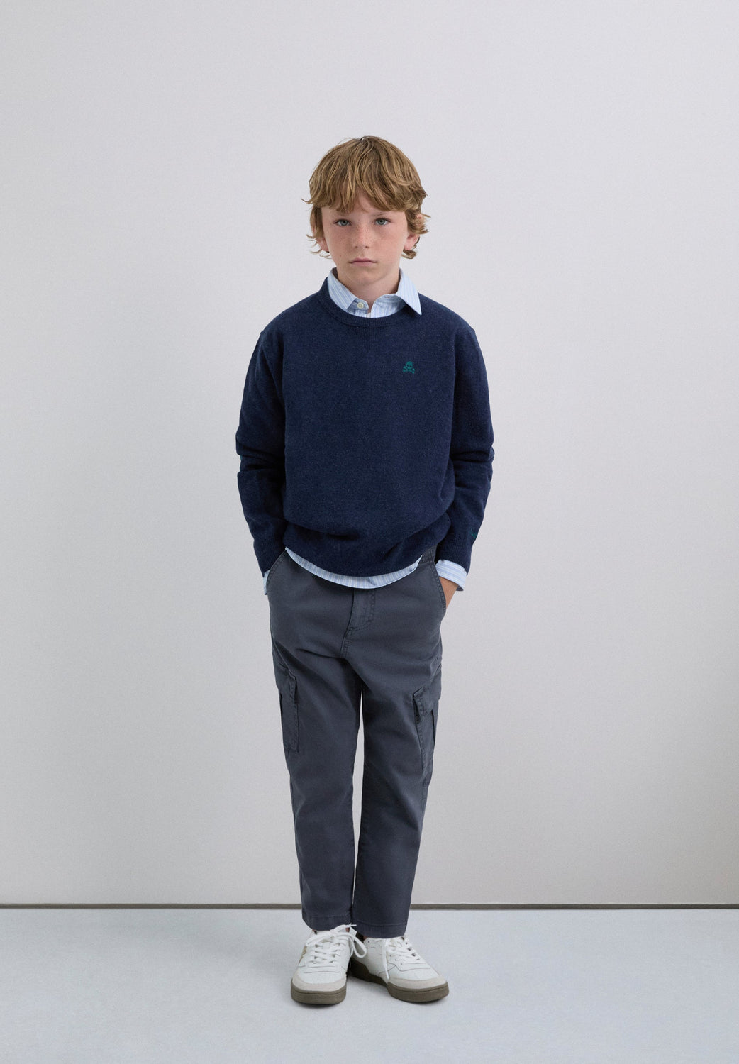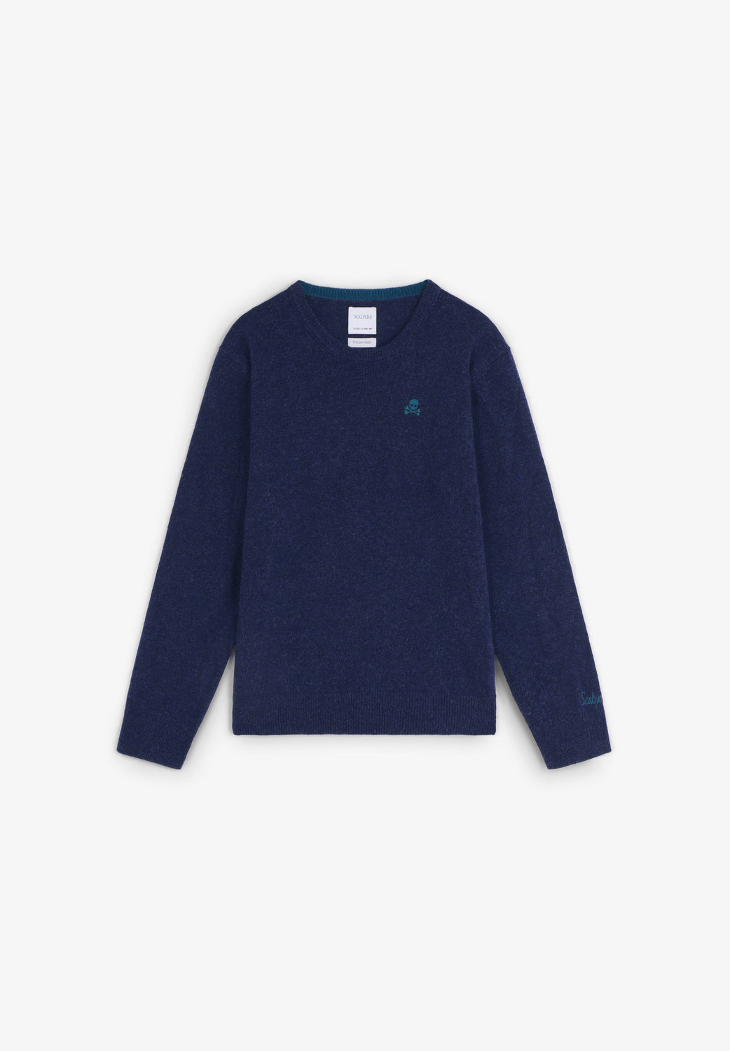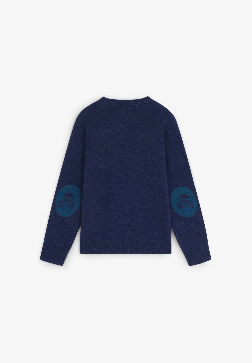Sweater made of wool and polyamide blend. Regular fit. Round neck. Long sleeves. Contrast embroidered skull detail. Ribbed trim. Contrast skull detail on the elbow pads.