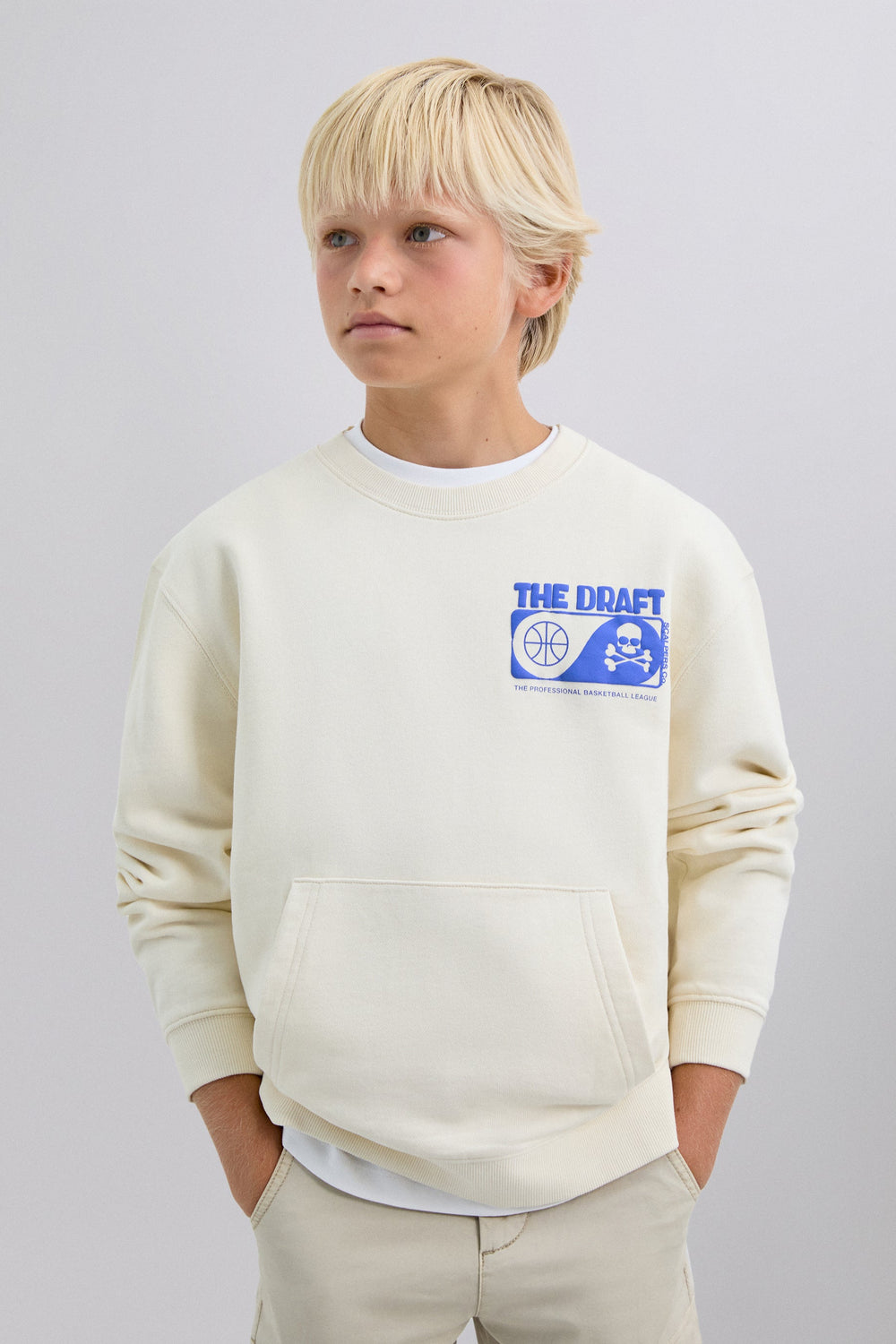 Sweatshirt made of 100% BCI cotton. Regular fit. Round neck. Long sleeves. Pouch pocket. Ribbed trim. Logo print detail on the chest and back.