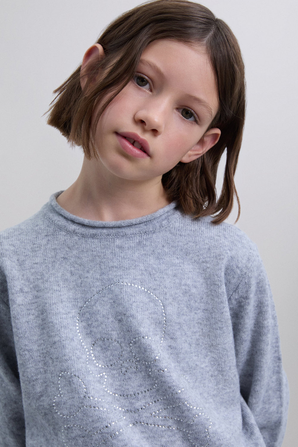 Sweater made of a synthetic blend with rhinestone logo print. Round neck. Long sleeves. Ribbed trim.