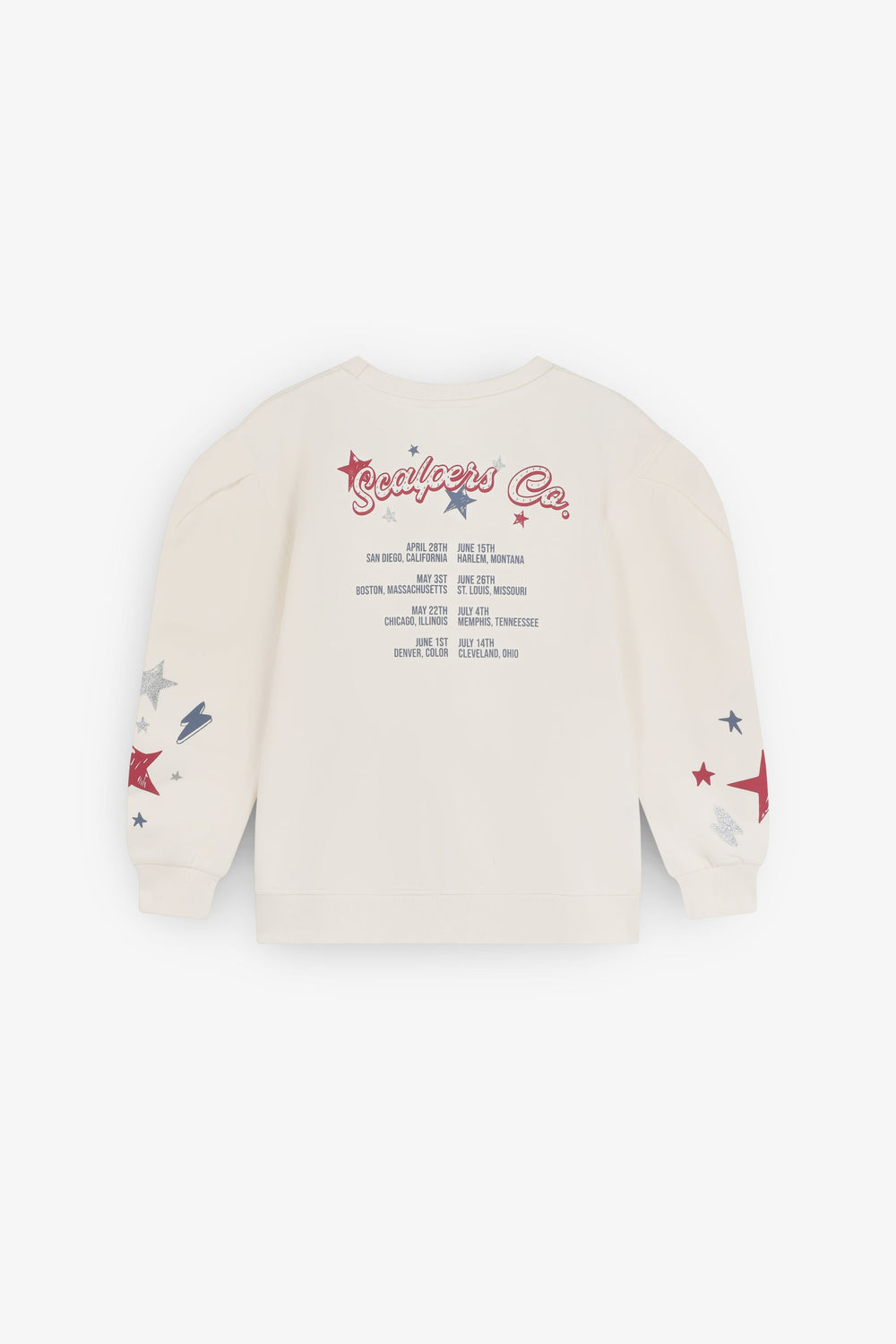 Sweatshirt made of 100% BCI cotton. Slightly puffed long sleeves. Round neck. Ribbed trim. Printed on sleeves and back.