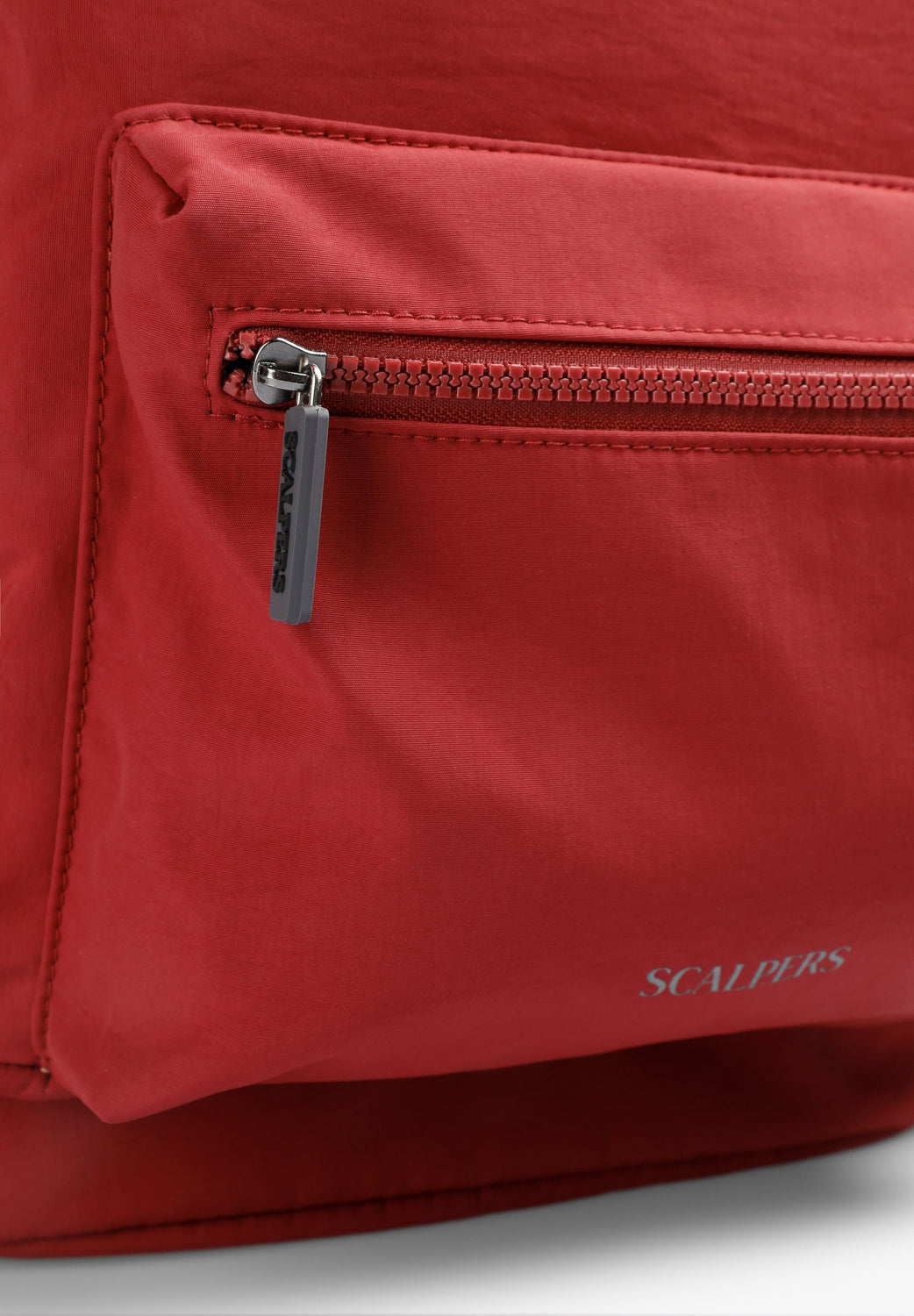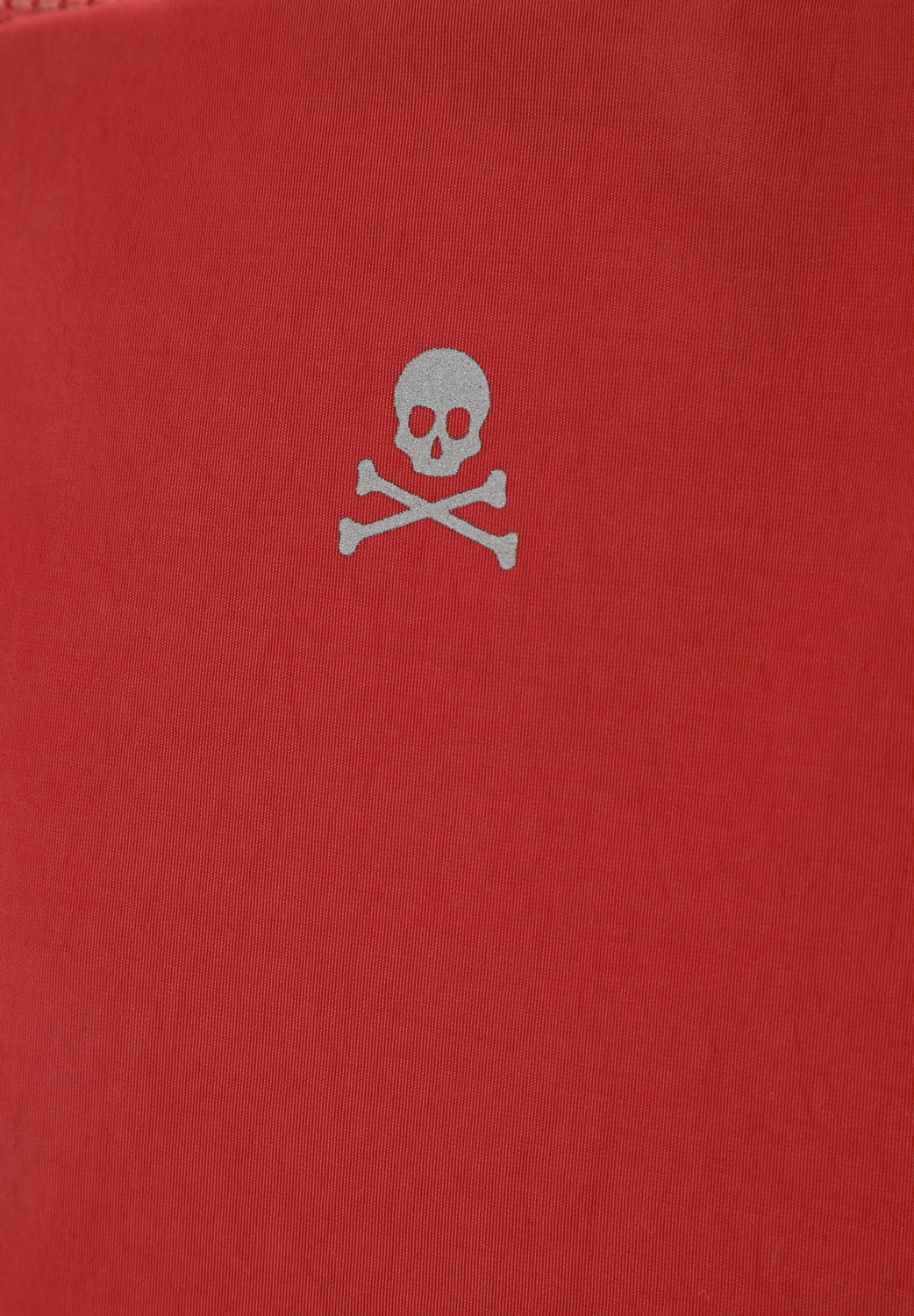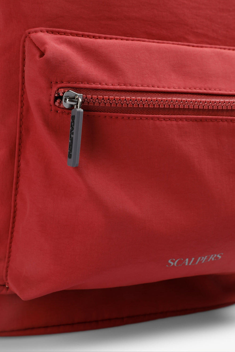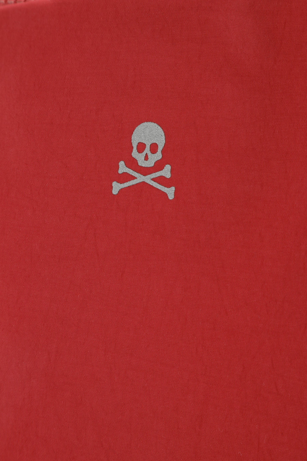 Backpack made of a technical fabric. Outer pocket on the front. Adjustable buckle fastening. Front logo and skull print detail. Top handle. Side and back fastening adjustments. Padded reinforced back.