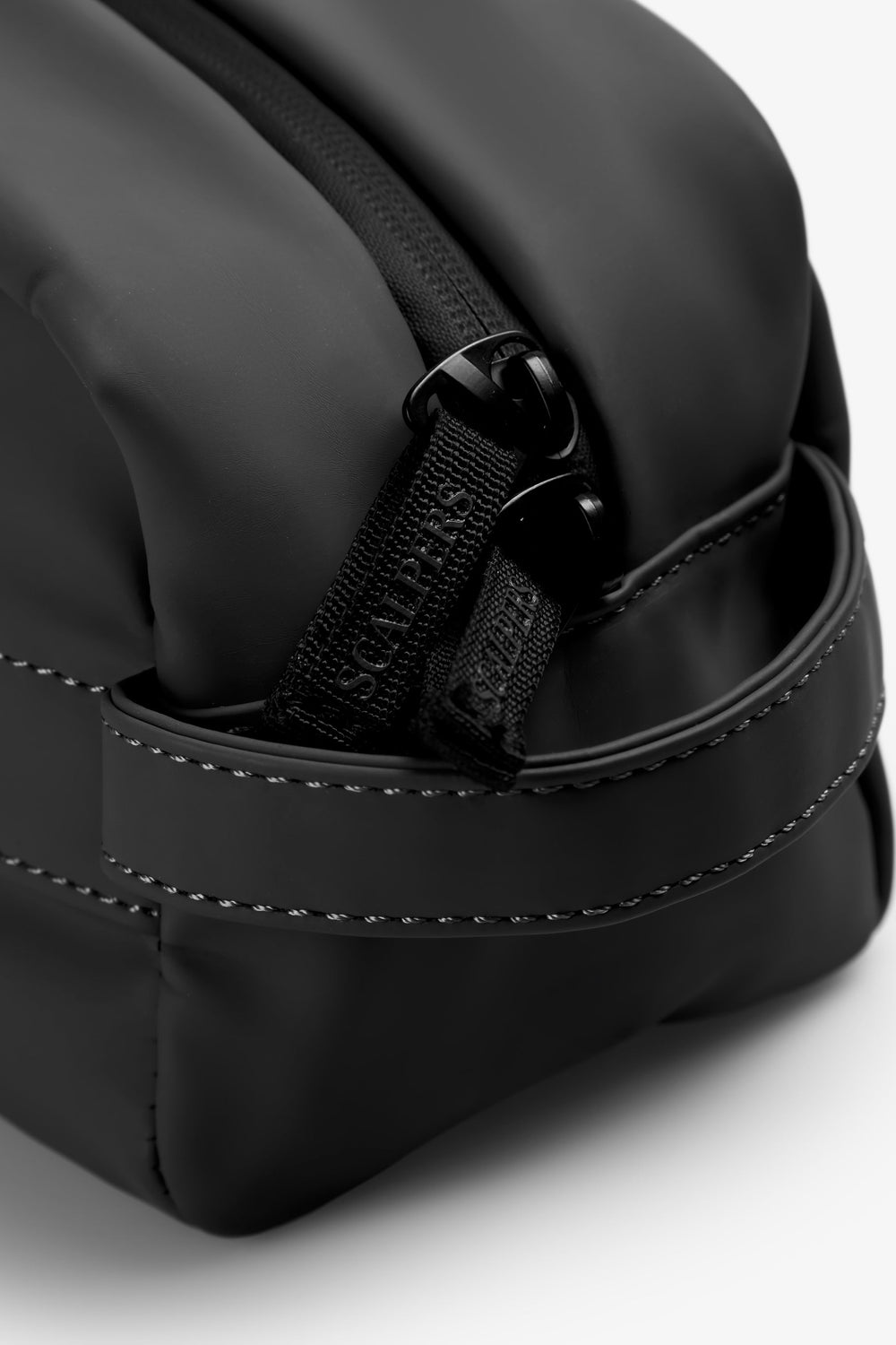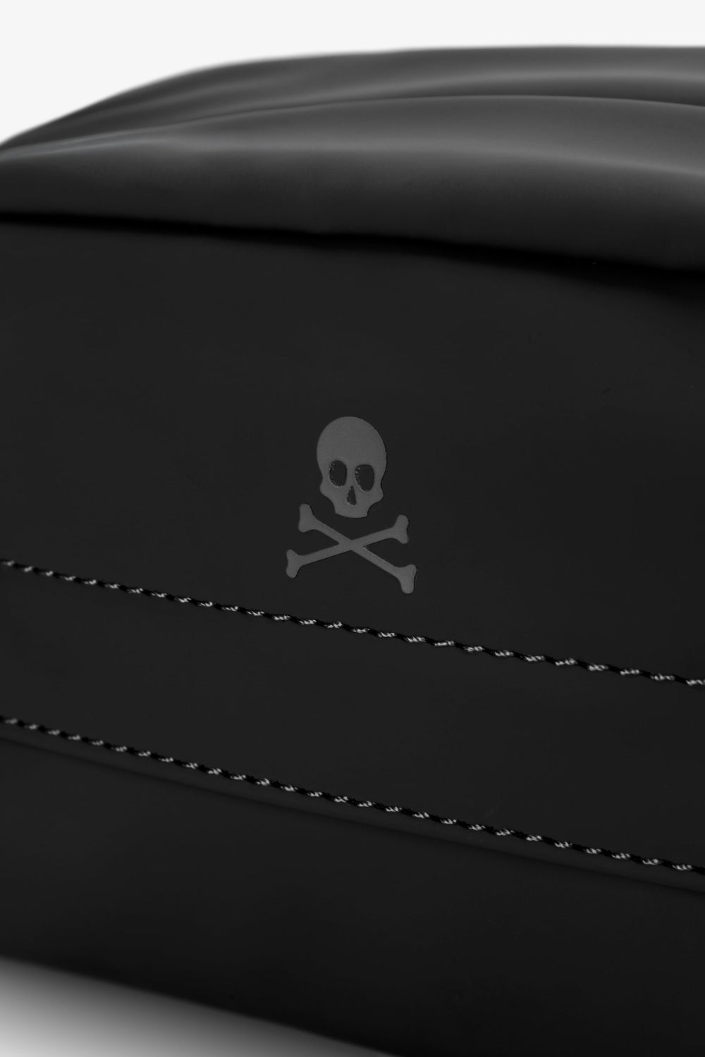 Travel toiletry bag in technical fabric. Right side handle and inner pocket, contrast reflective skulls.
