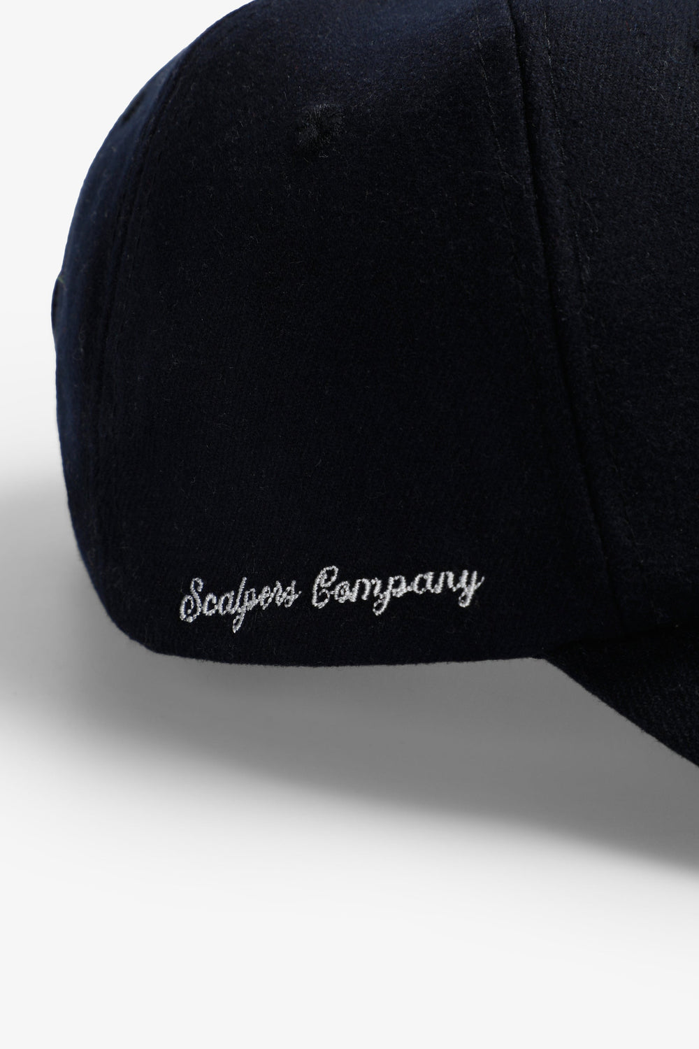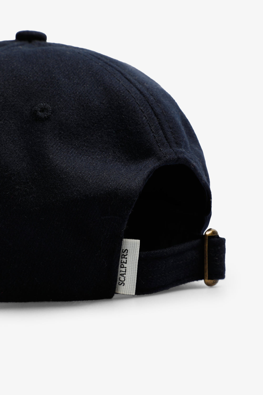 Wool effect cap with adjustable back closure and contrast embroidered lettering detail on the side.