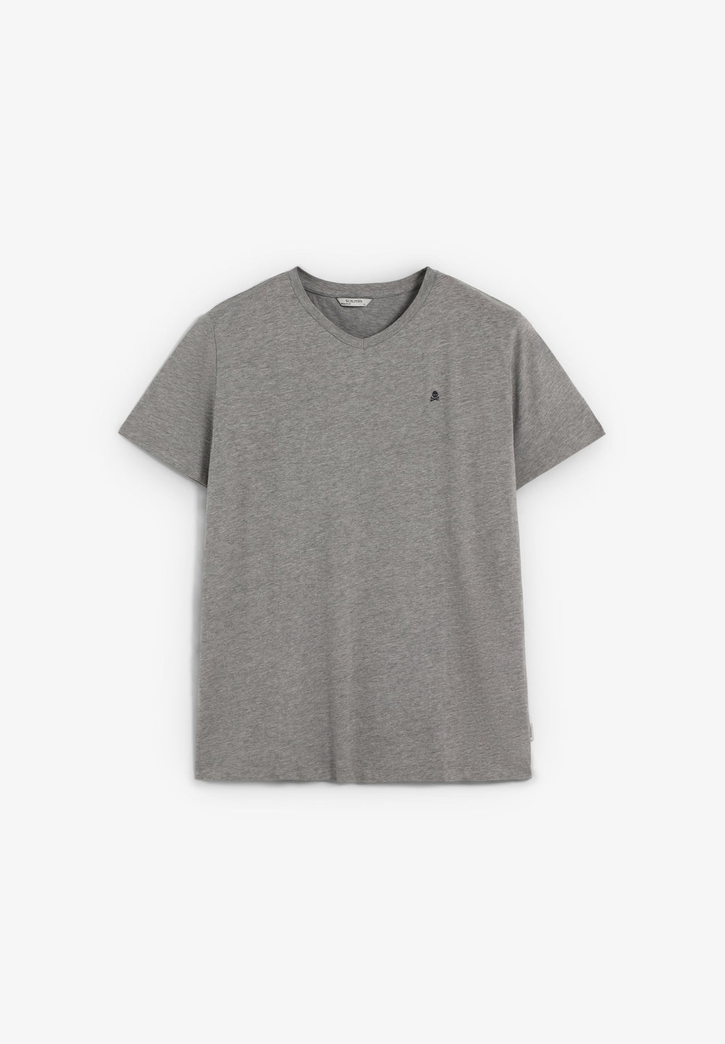 Camiseta básica con calavera bordada. Confeccionada en 100% algodón BCI. Corte Regular Fit. Cuello en pico. Manga corta.