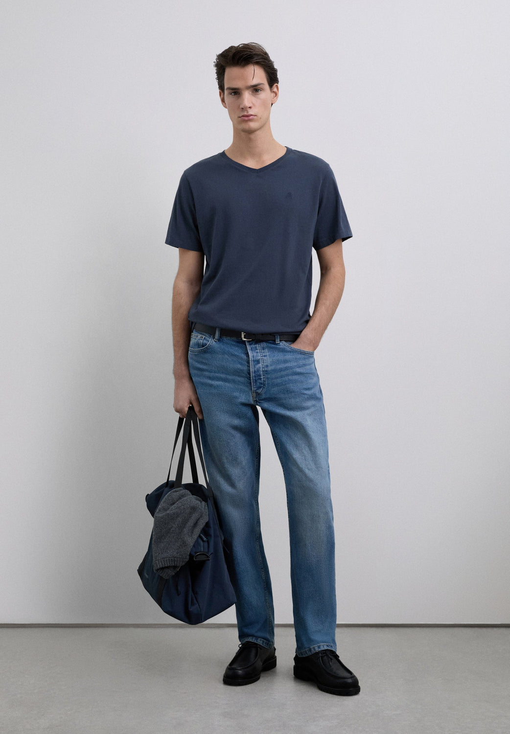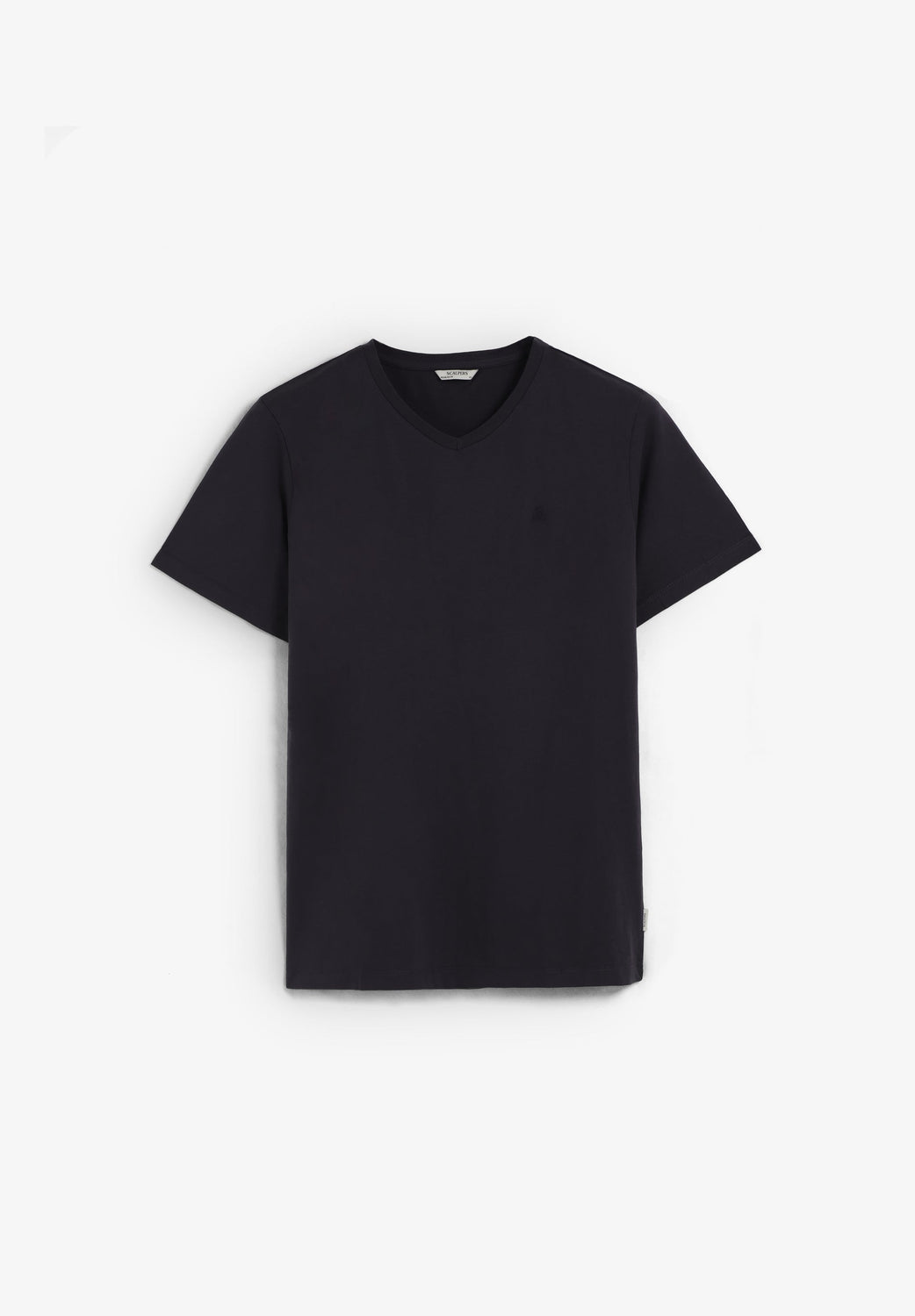 Camiseta básica con calavera bordada. Confeccionada en 100% algodón BCI. Corte Regular Fit. Cuello en pico. Manga corta.