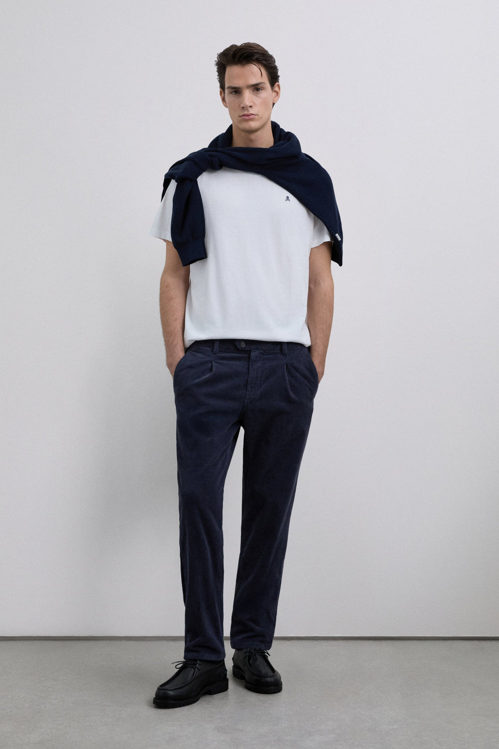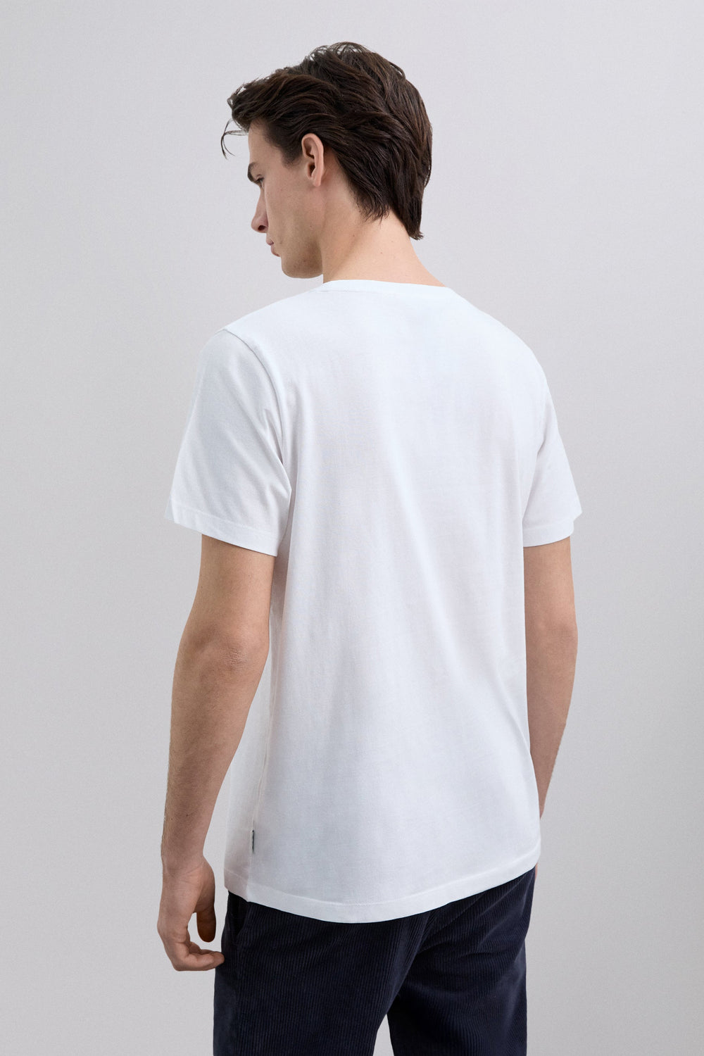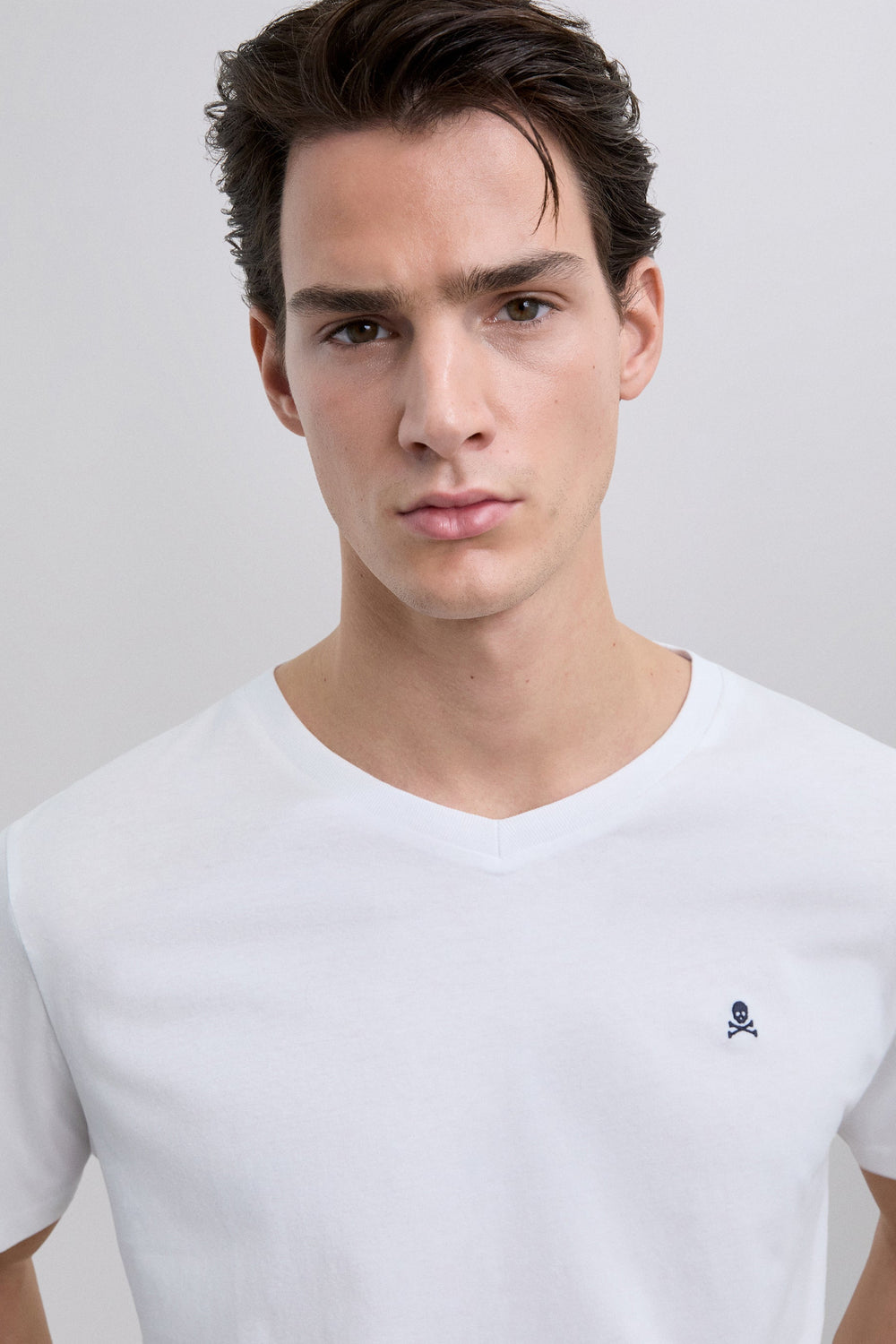Camiseta básica con calavera bordada. Confeccionada en 100% algodón BCI. Corte Regular Fit. Cuello en pico. Manga corta.