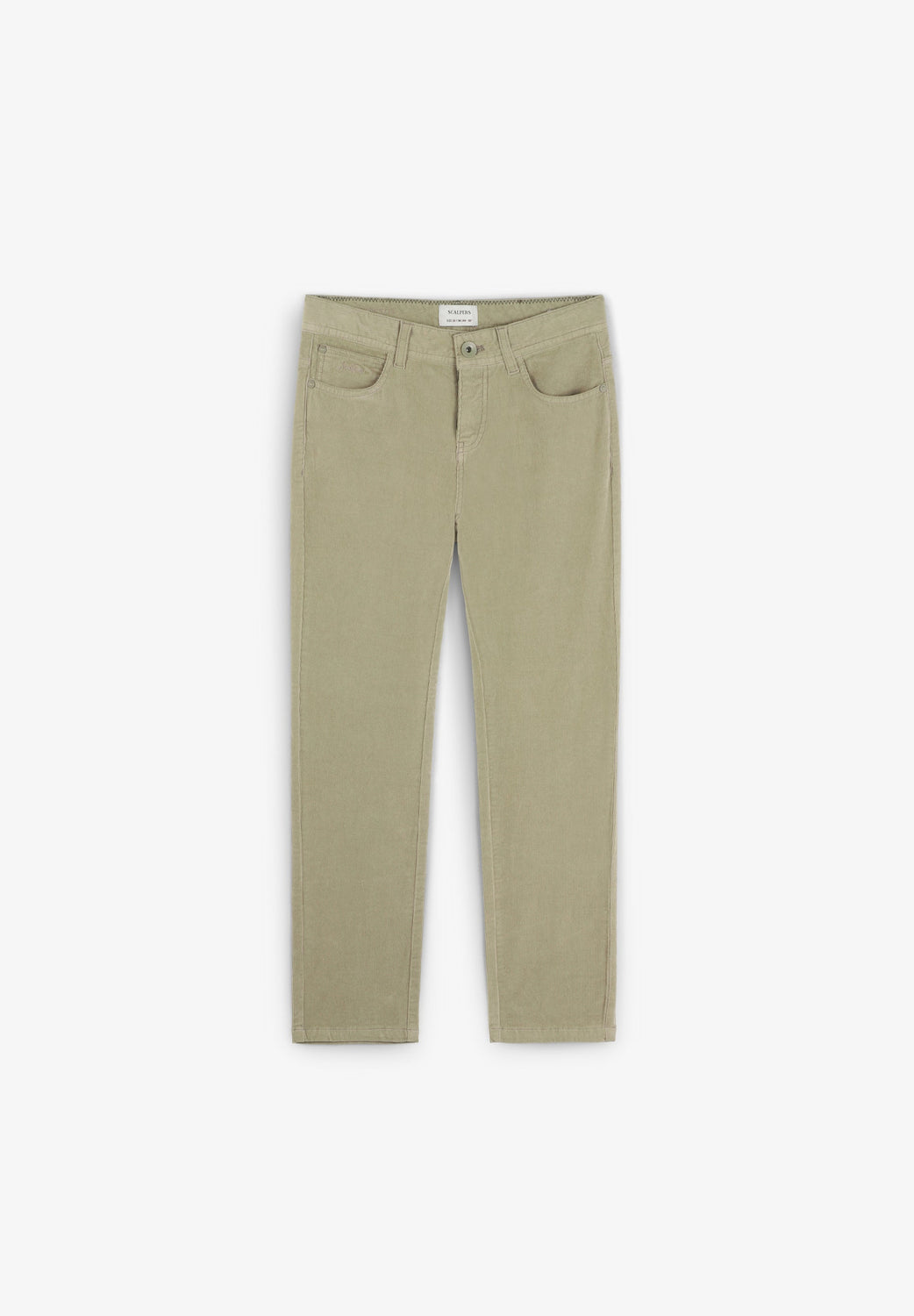 Five-pocket trousers made of slightly stretch BCI cotton. Regular fit. Button and zip fastening. Belt loops at the waist.