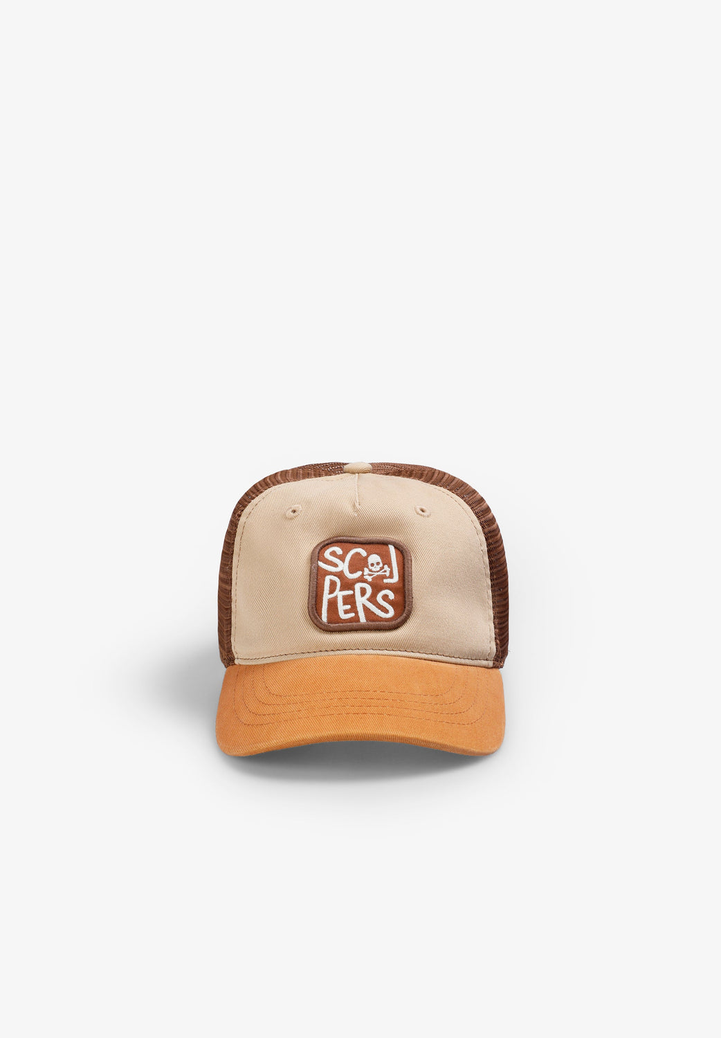 Trucker cap made of cotton and technical fabric with mesh back. Visor and embroidered patch detail with skull and contrast logo.