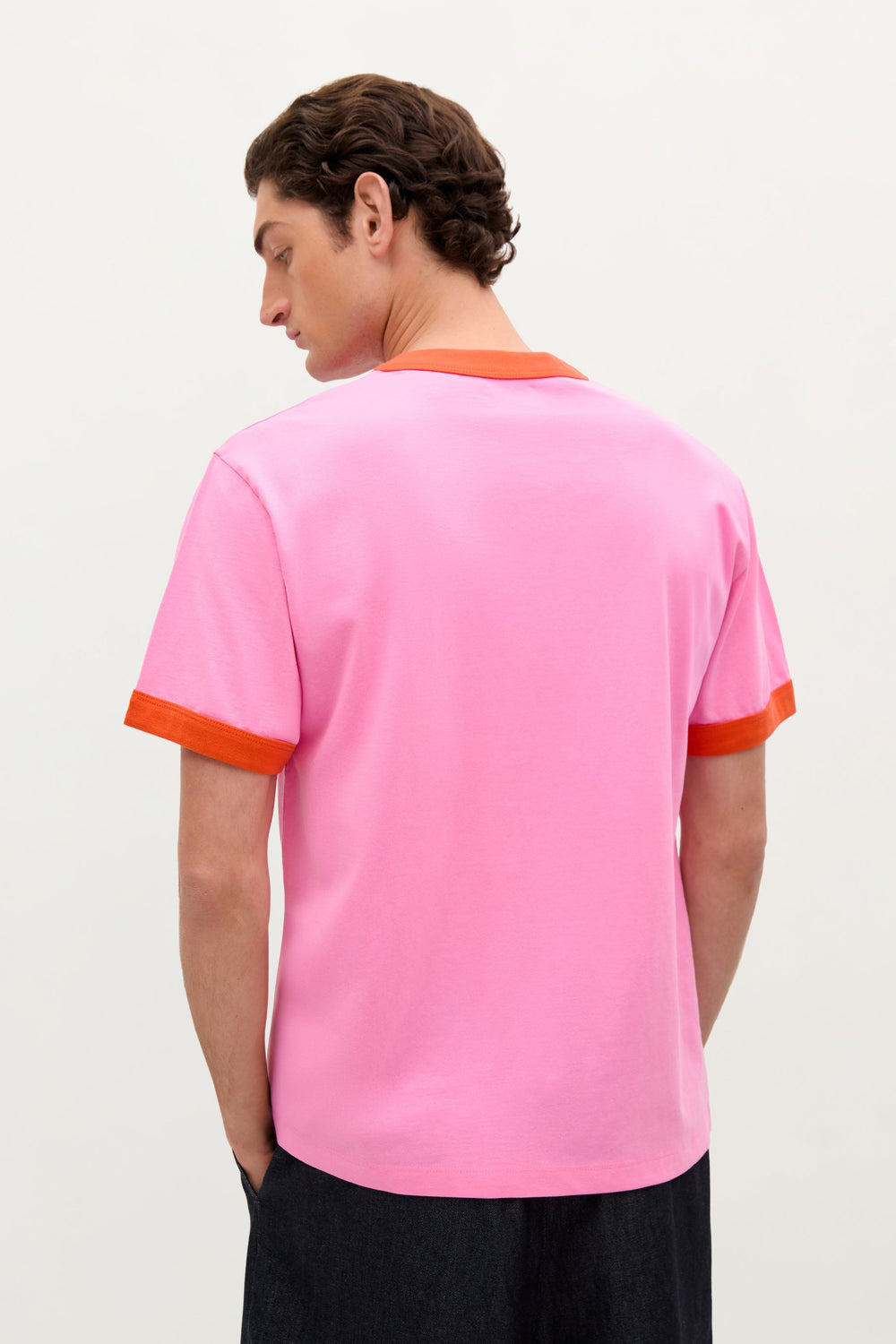 T-shirt made of 100% cotton with front print and contrast piping detail on neck and sleeves. Regular fit, round neck and short sleeves.