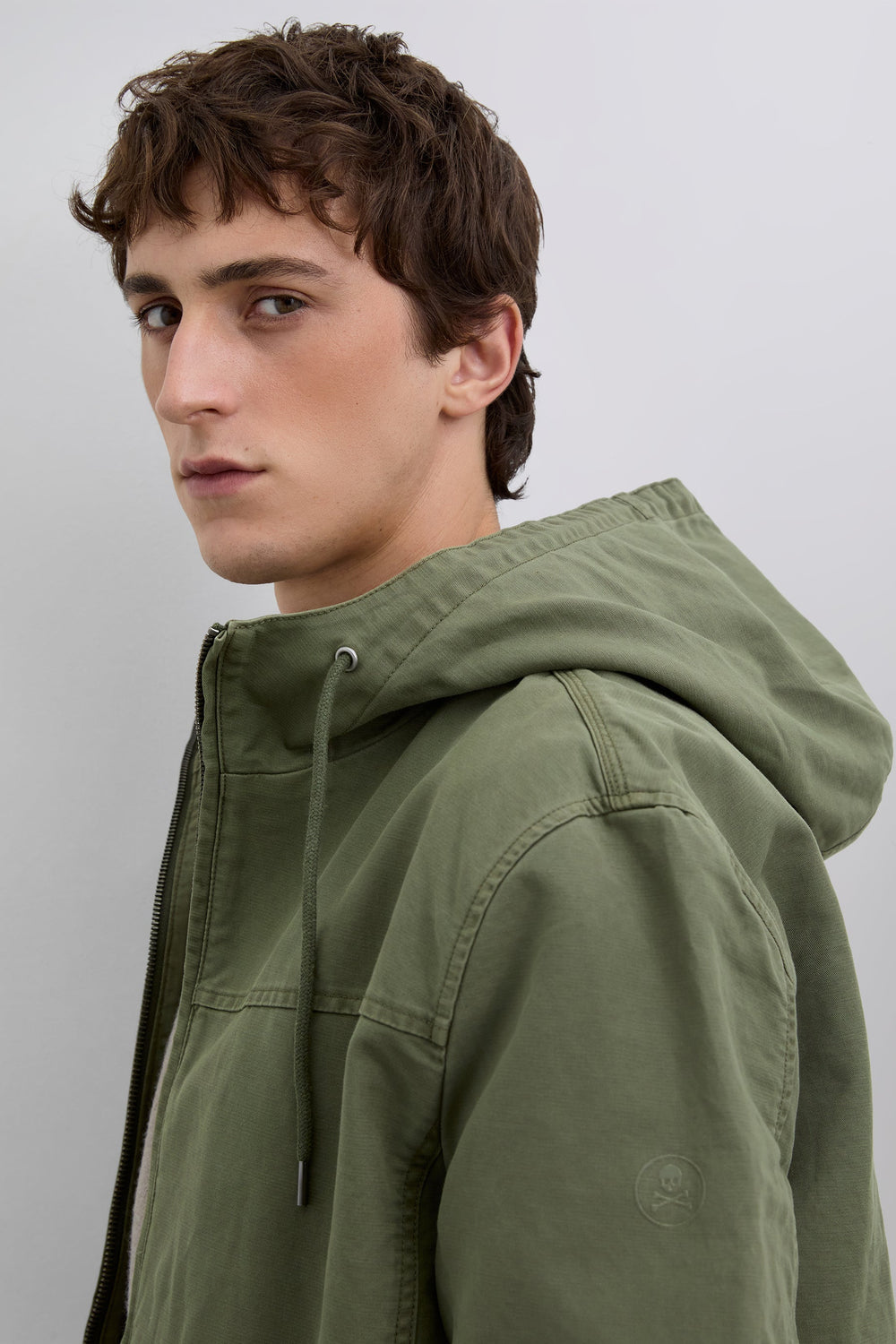 Jacket made of 100% BCI cotton. Side piped seam pockets. Hood with adjustable drawstring. Customised zip and drawstring stoppers with logo. High density printed logo detail. Sleeves with elasticated cuffs.