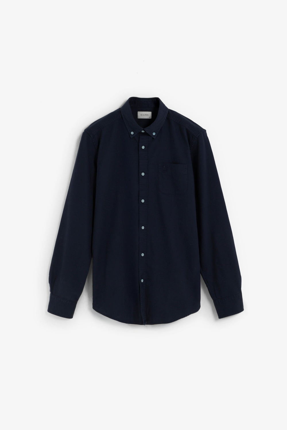 Shirt made of 100% BCI cotton. Regular fit. Matching embroidered skull detail on the chest. Buttoned collar. Long sleeves with buttoned cuffs. Patch pocket on the chest. Front button fastening