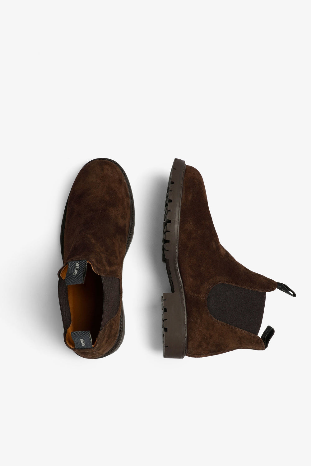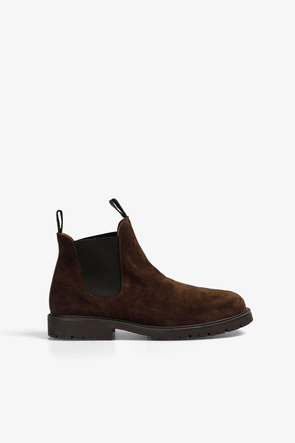Chelsea boots made of 100% leather. Elasticated sides for a better fit. Rounded shape. Matching sole with slight heel. Logo label details.