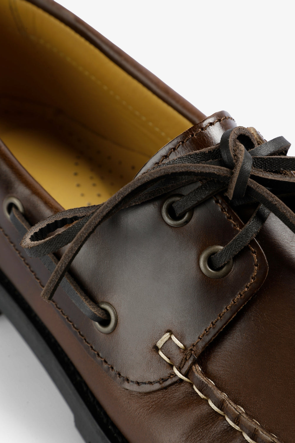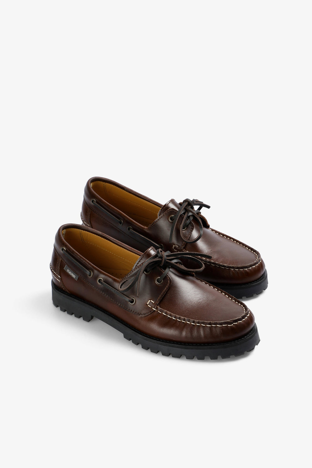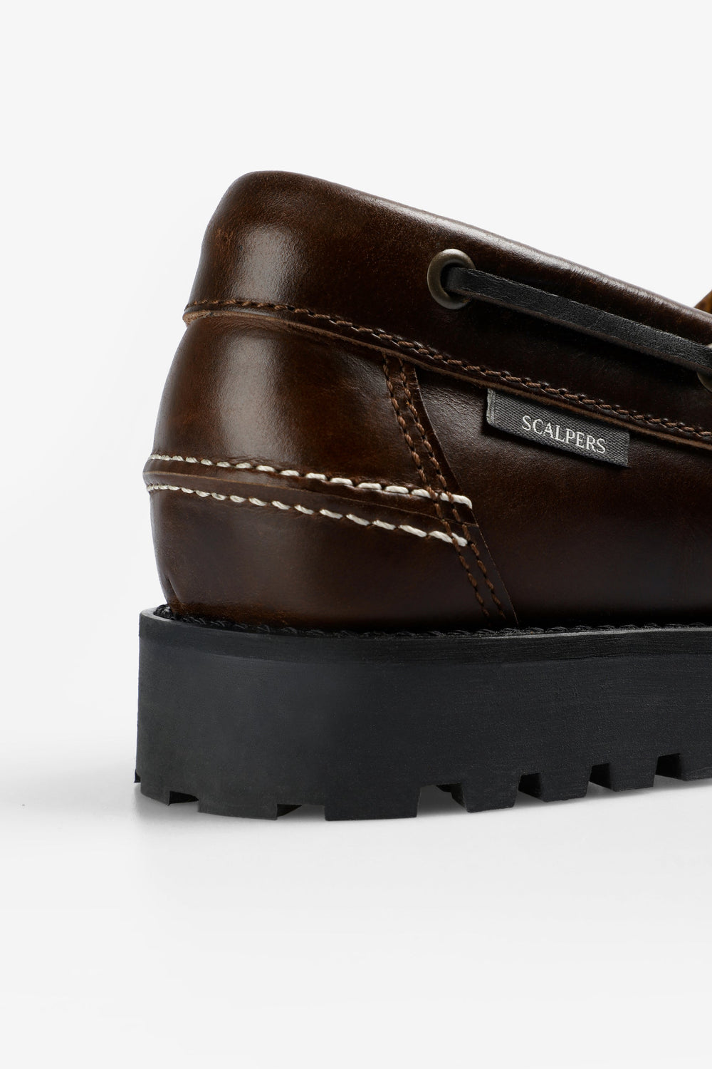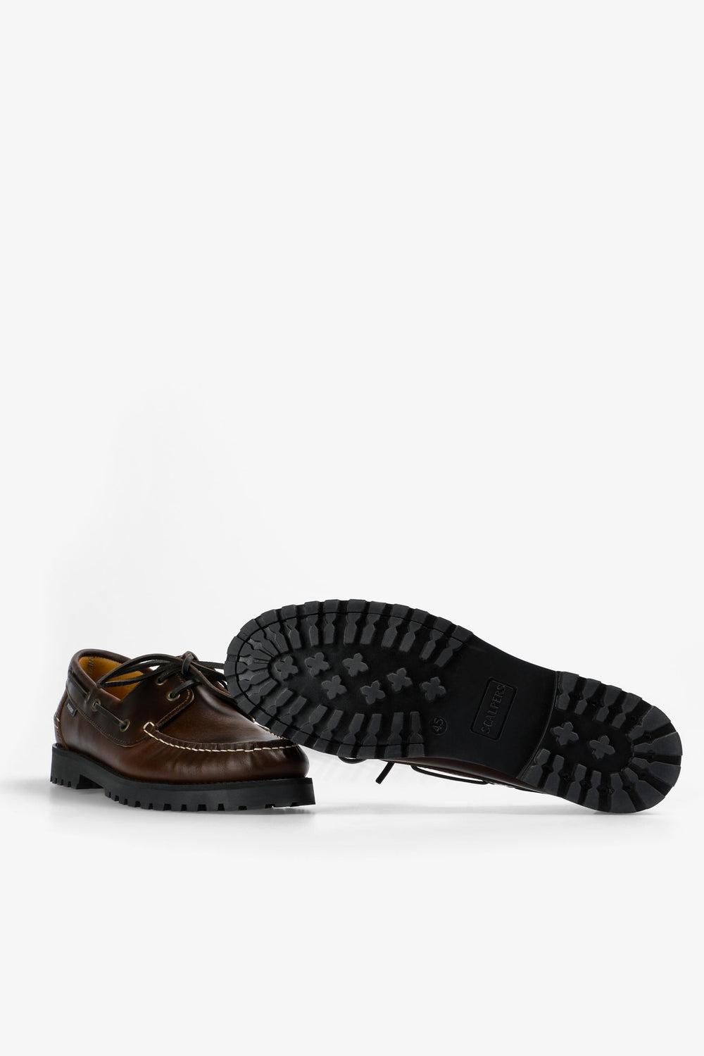 Deck shoes in a leather blend. Lace-up fastening and chunky track sole. Side label