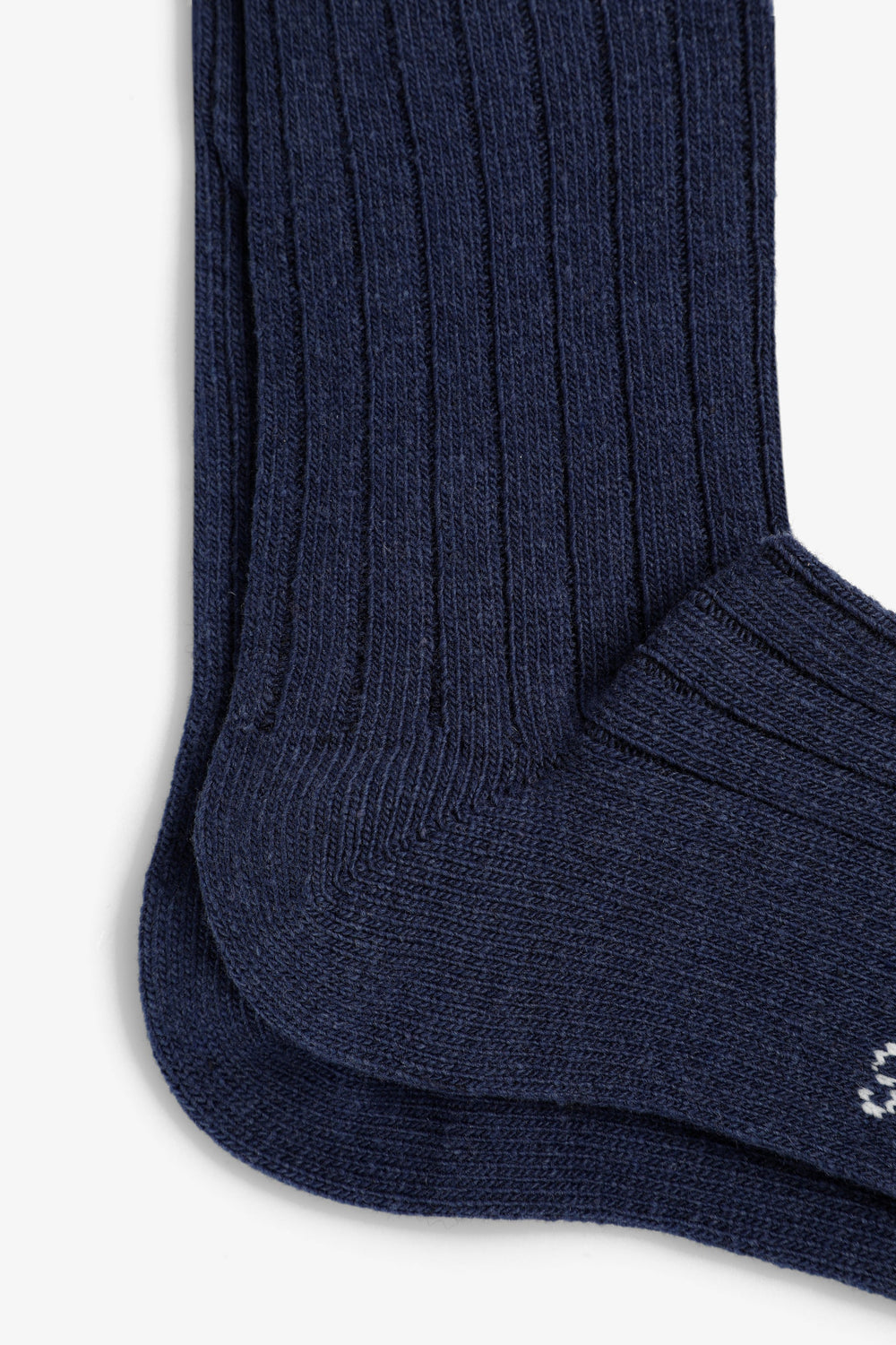 Over-the-calf socks made of a wool and cashmere blend. Embroidered logo detail on the sole. Ribbed cuffs.