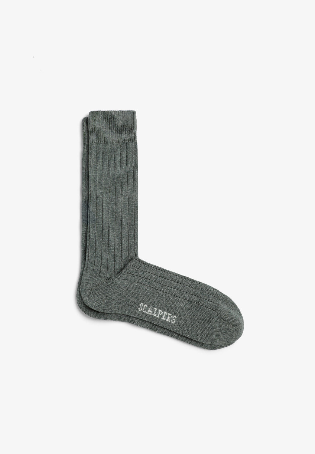 Over-the-calf socks made of a wool and cashmere blend. Embroidered logo detail on the sole. Ribbed cuffs.