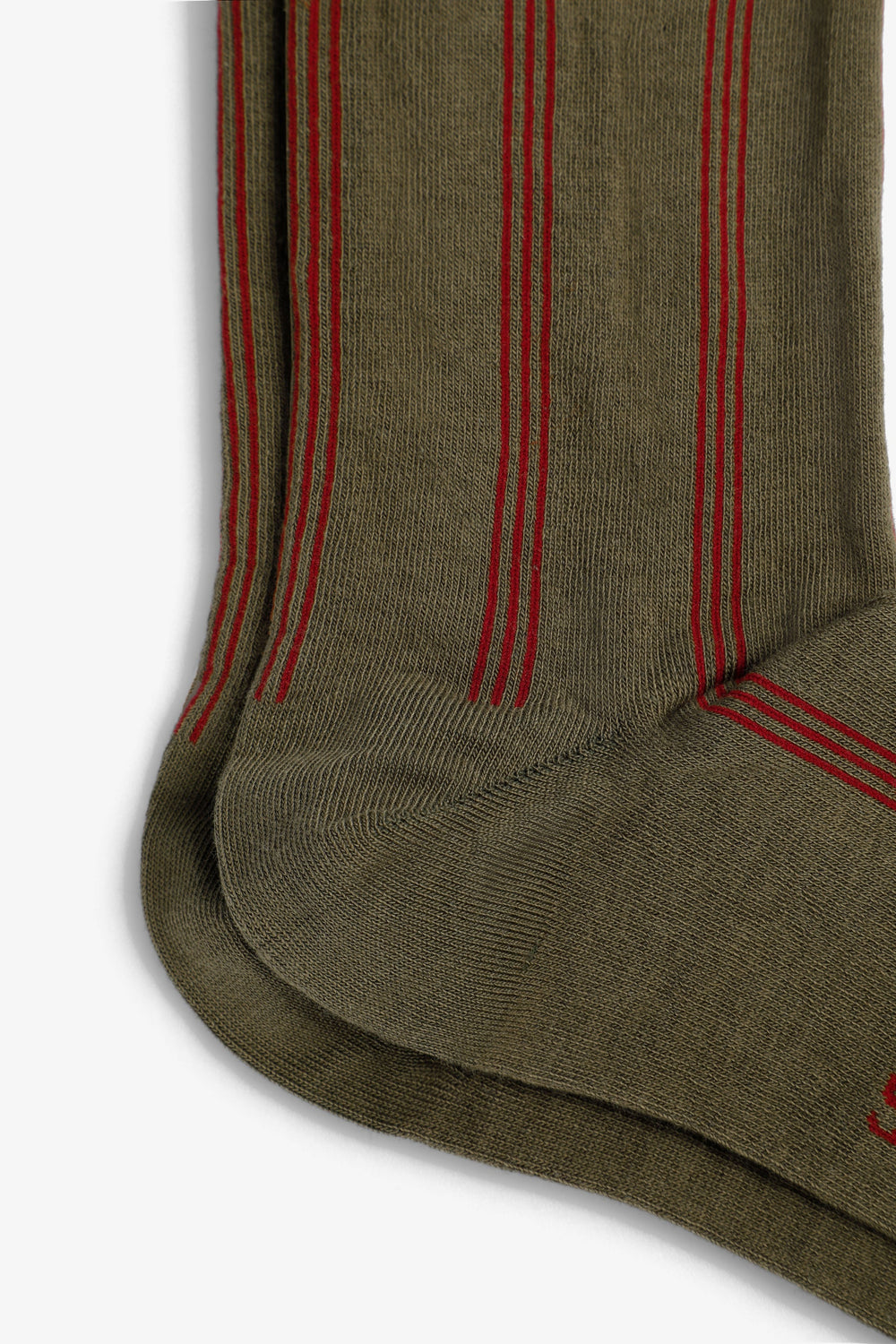Over-the-calf socks made of a cotton blend. Contrast embroidered stripe pattern. Contrast embroidered logo on the top. Ribbed trim.