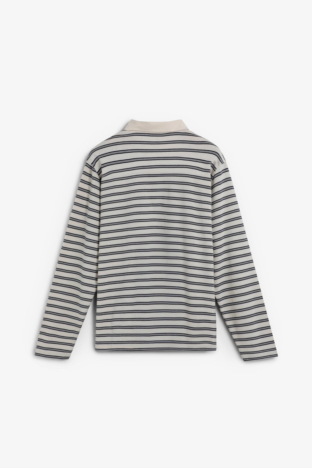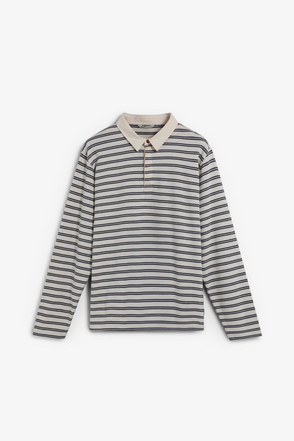 Polo shirt made of knitted 100% BCI cotton. Relaxed fit. Long sleeves. Contrast twill collar. Four-button fastening with concealed placket.