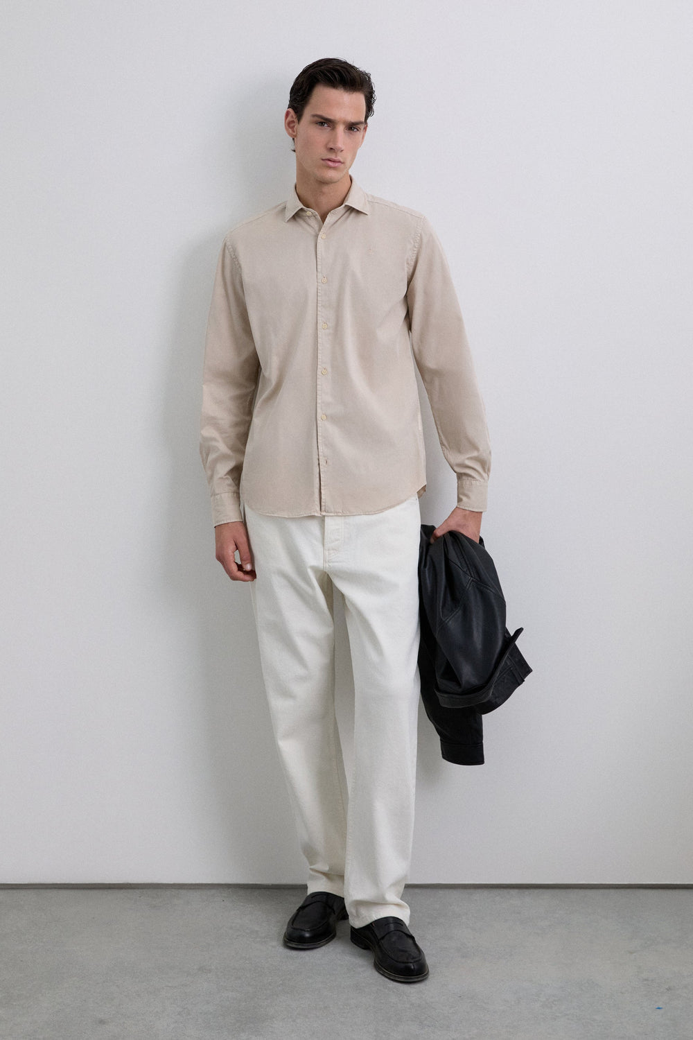 Shirt made of 100% organic cotton. Regular fit. Classic spread collar. Front button fastening. Long sleeves with buttoned cuffs. Patch pocket on the chest. Sleeve placket. Matching embroidered skull detail.
