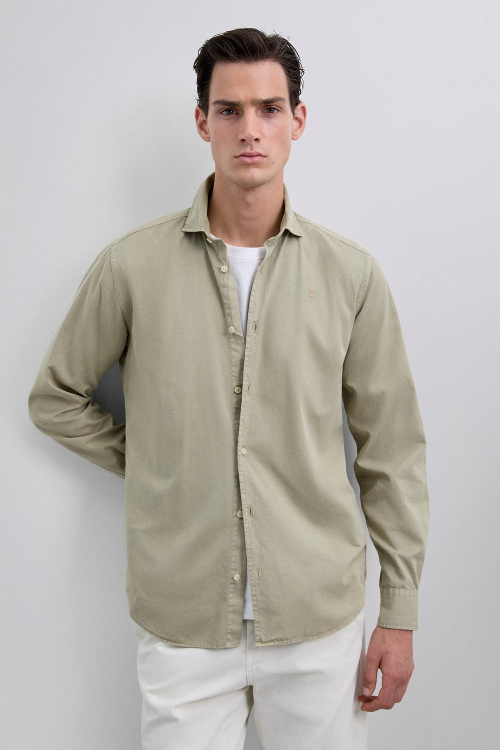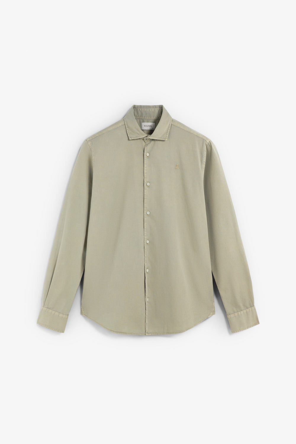 Shirt made of 100% organic cotton. Regular fit. Classic spread collar. Front button fastening. Long sleeves with buttoned cuffs. Patch pocket on the chest. Sleeve placket. Matching embroidered skull detail.
