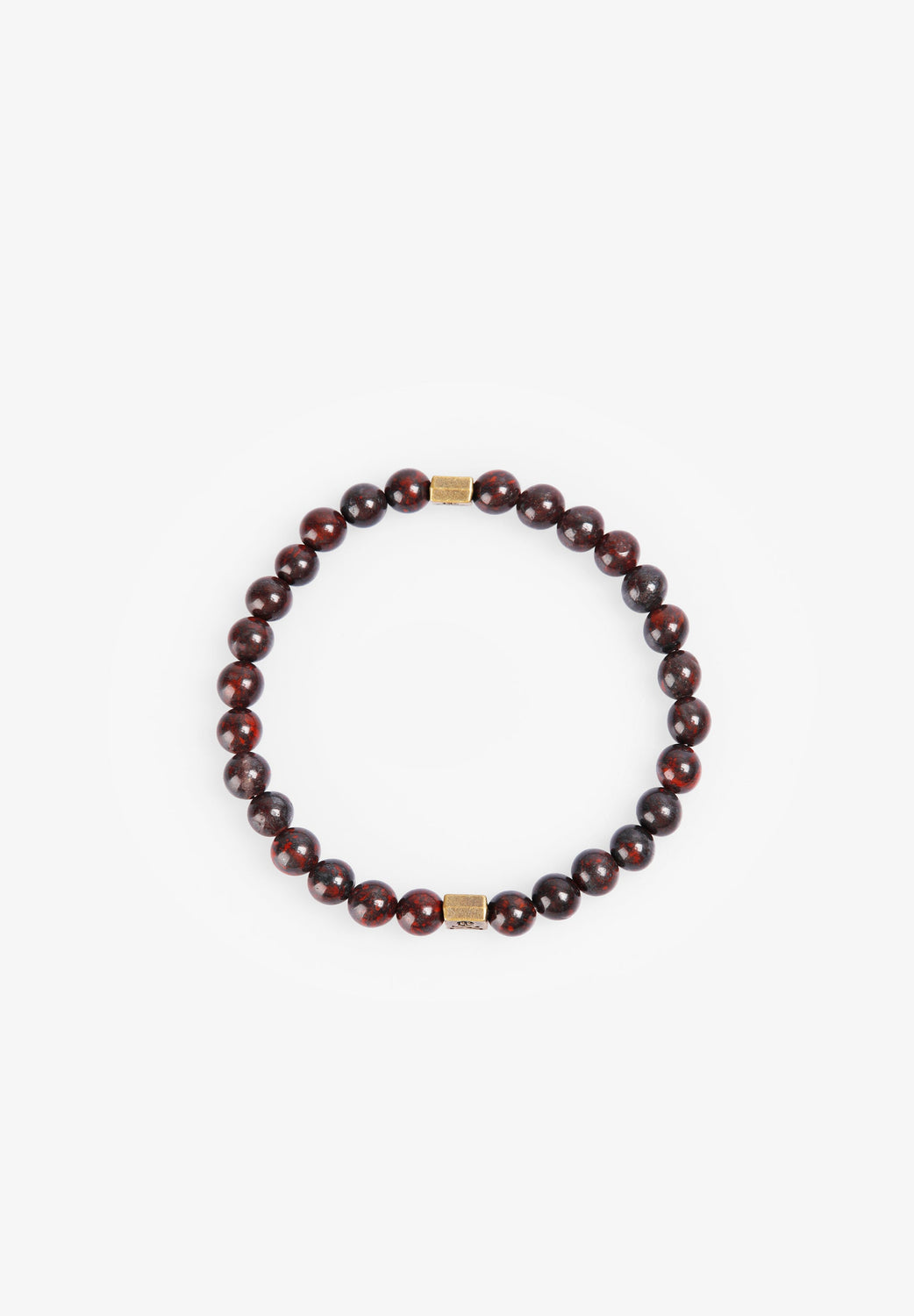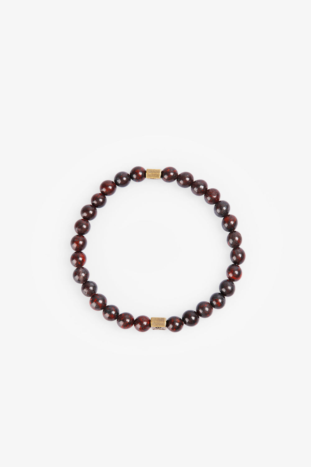 Bracelet made of round natural stone in different shades. Metal appliqués with logo.