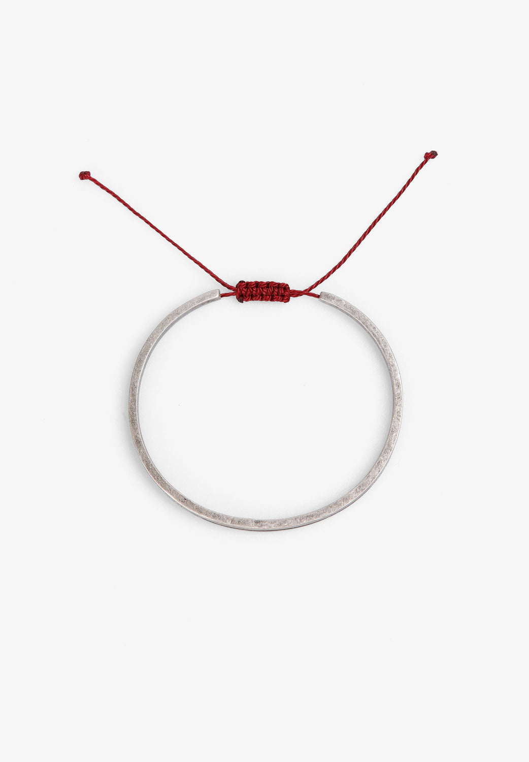 Bracelet made of brass with silver tone finish. Contrast stripe. Adjustable wrist fastening.
