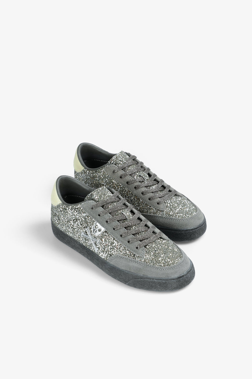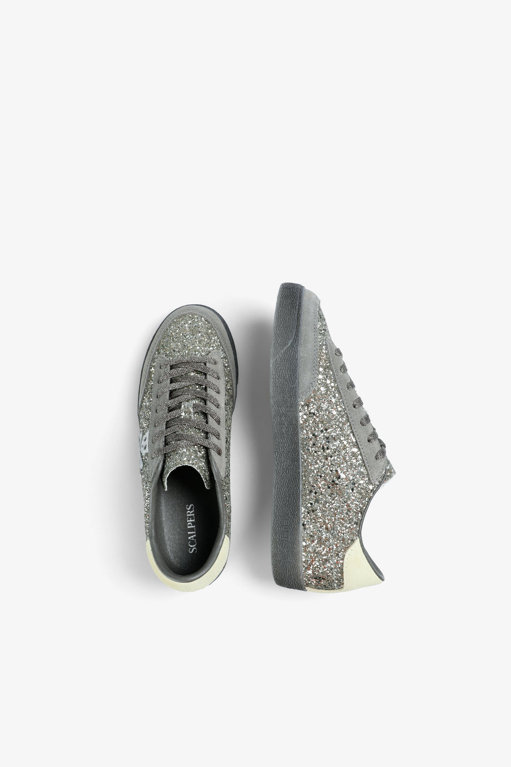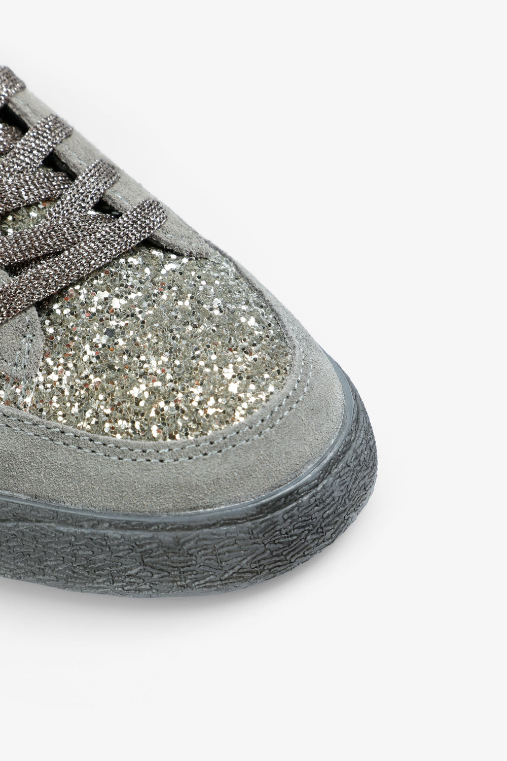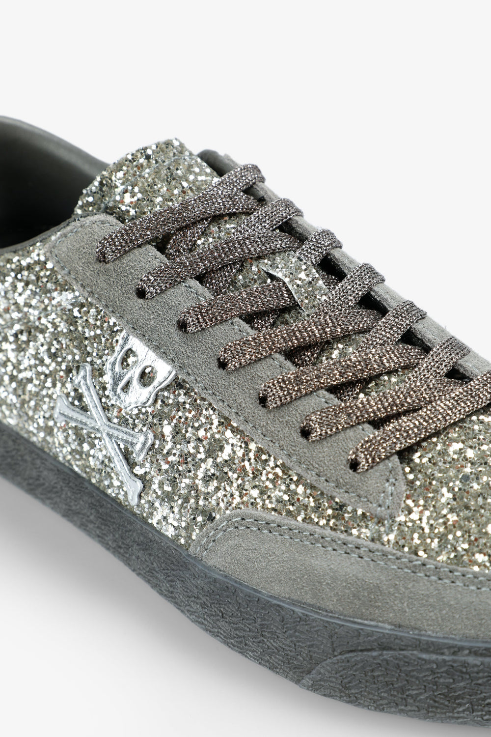 Suede sneakers. Glitter. Contrast embroidered skull on side. Lace-up fastening. Contrast heel with matching embroidered logo. Contrast rubber sole.