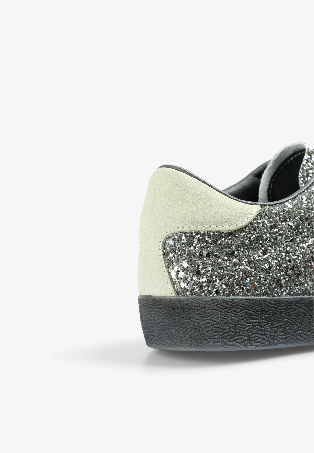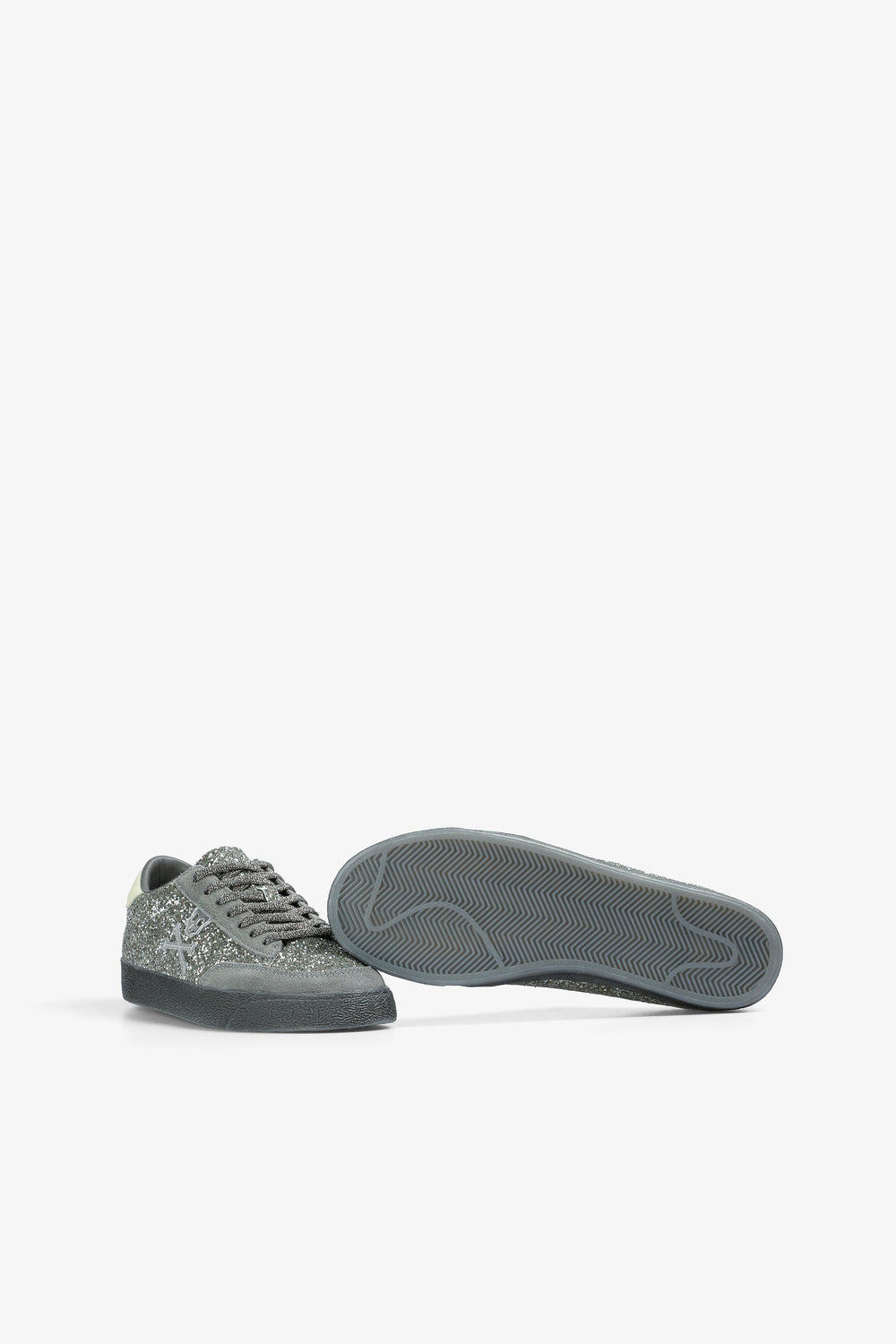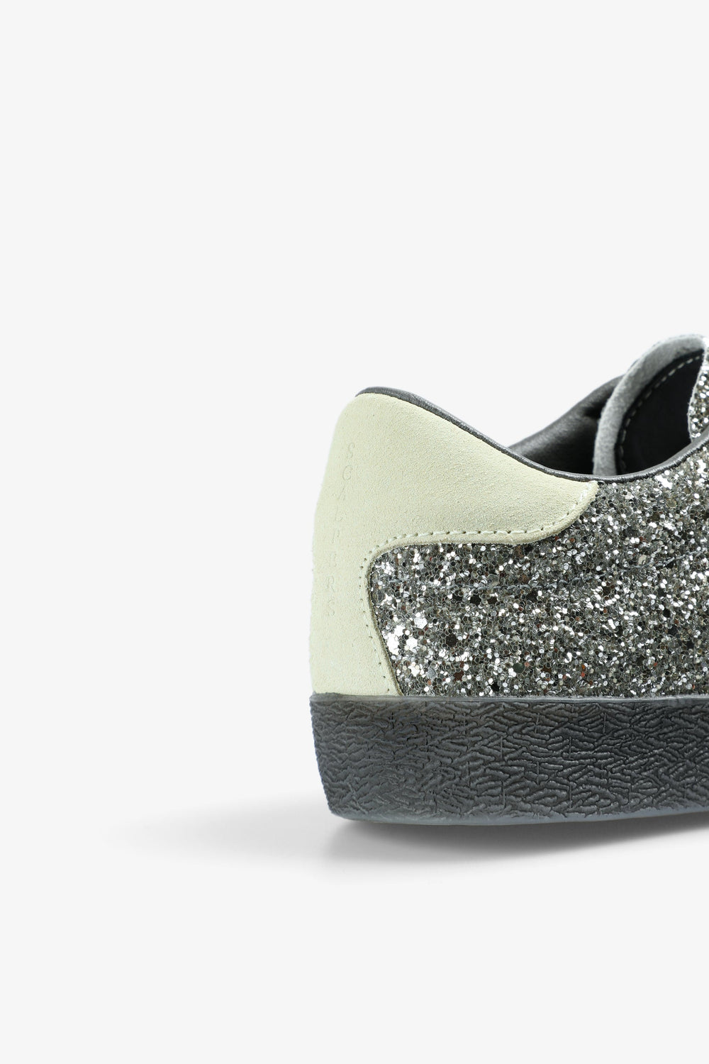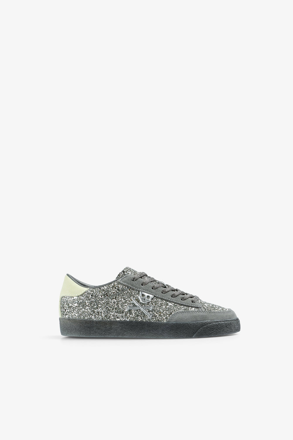 Suede sneakers. Glitter. Contrast embroidered skull on side. Lace-up fastening. Contrast heel with matching embroidered logo. Contrast rubber sole.