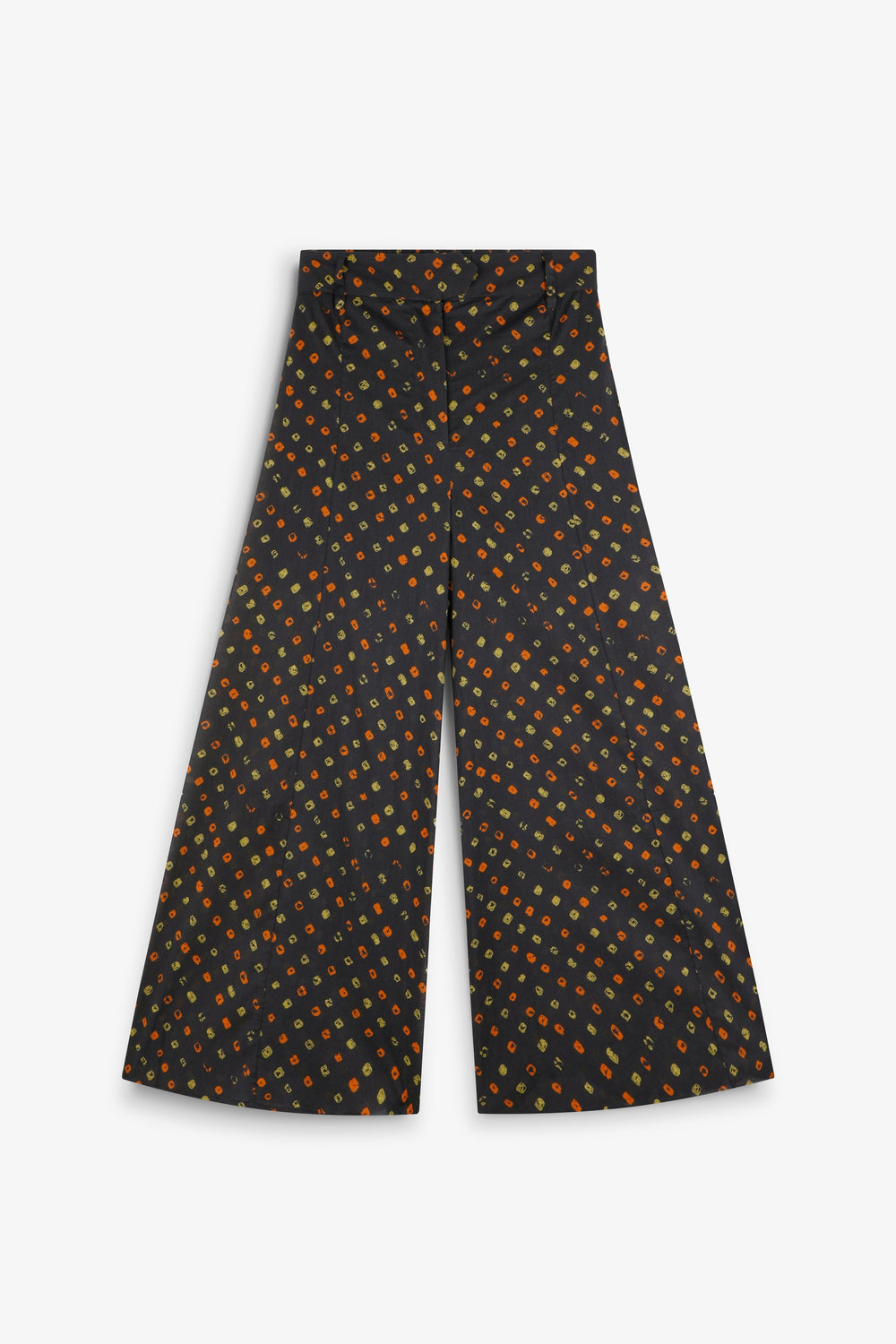 Jeans made of 100% organic BCI cotton. Culotte fit. Printed. Front zip and button fastening. Elasticated back waistband.