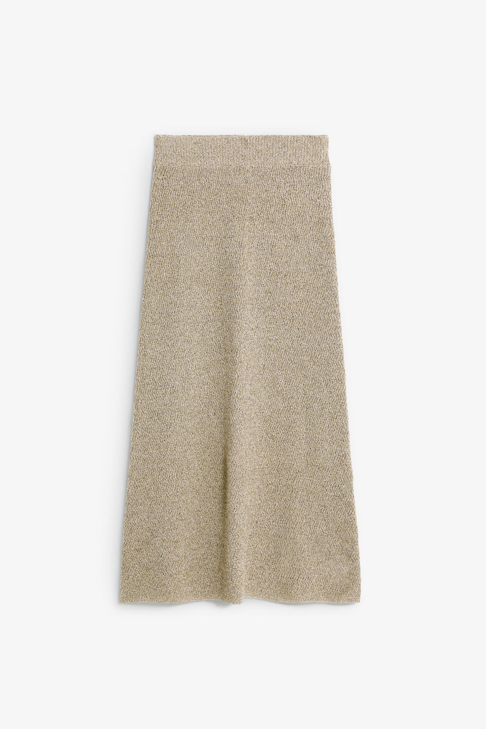 Long skirt made of knitted fabric. Flared. Elasticated waistband.