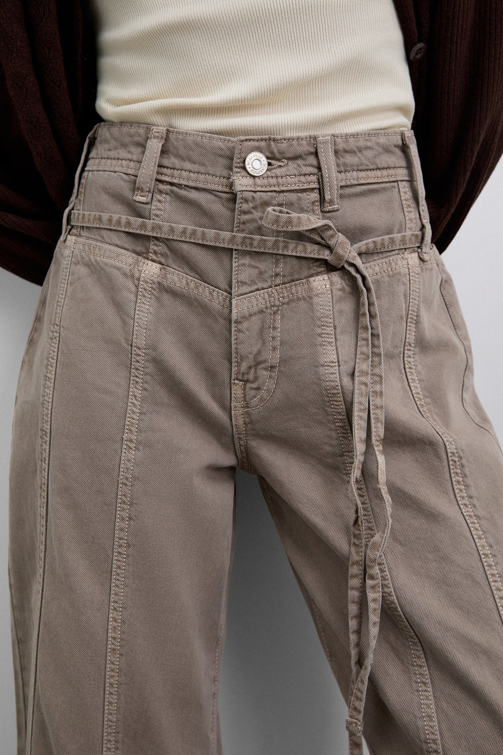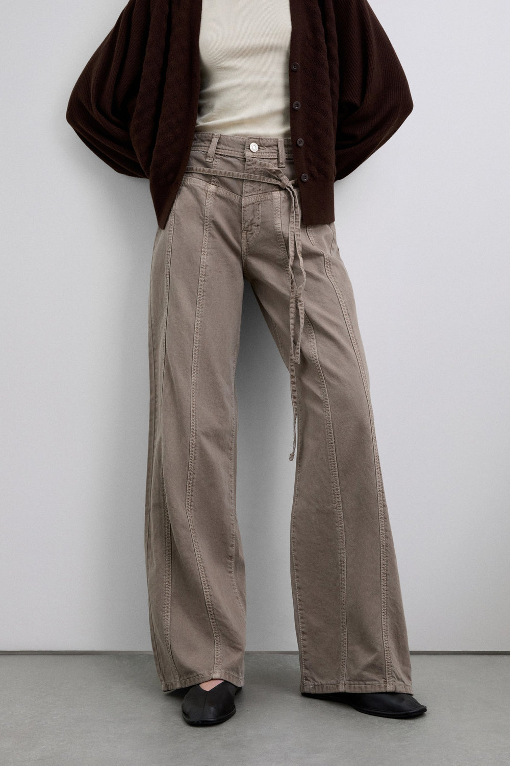 Trousers made of 100% BCI cotton. Full length. Central seams. Faded effect. Matching drawstring waist. Side and back pockets.
