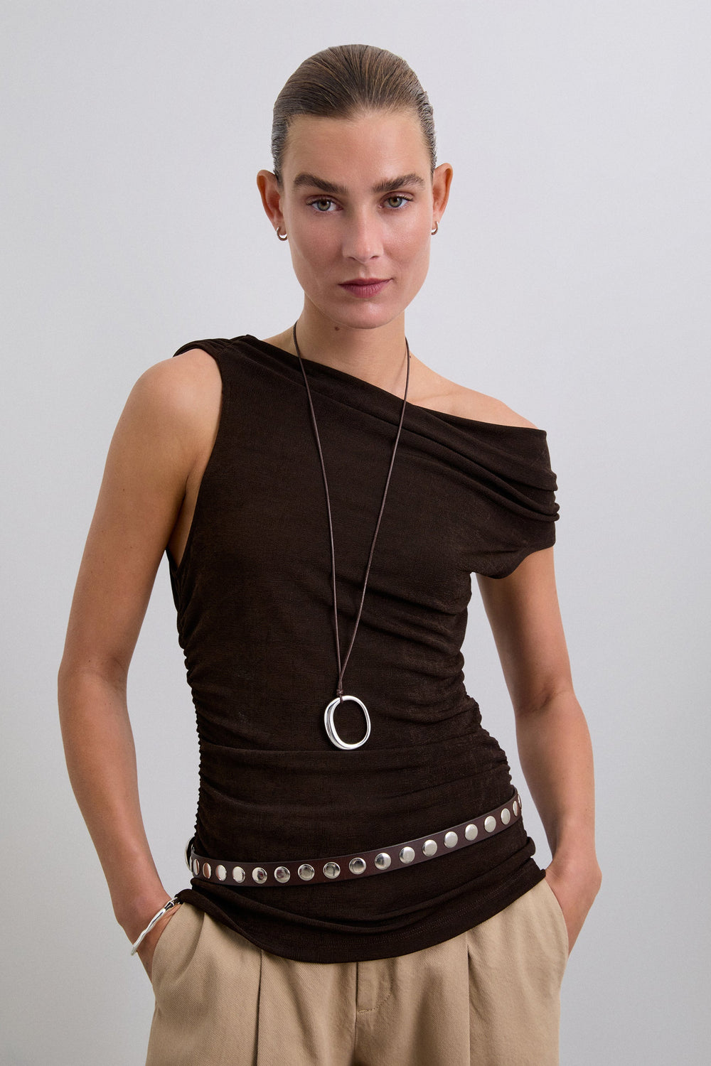 Top made of slightly stretchy fabric. Slim fit, Off The Shoulder, asymmetric neckline with gathers on the sides.