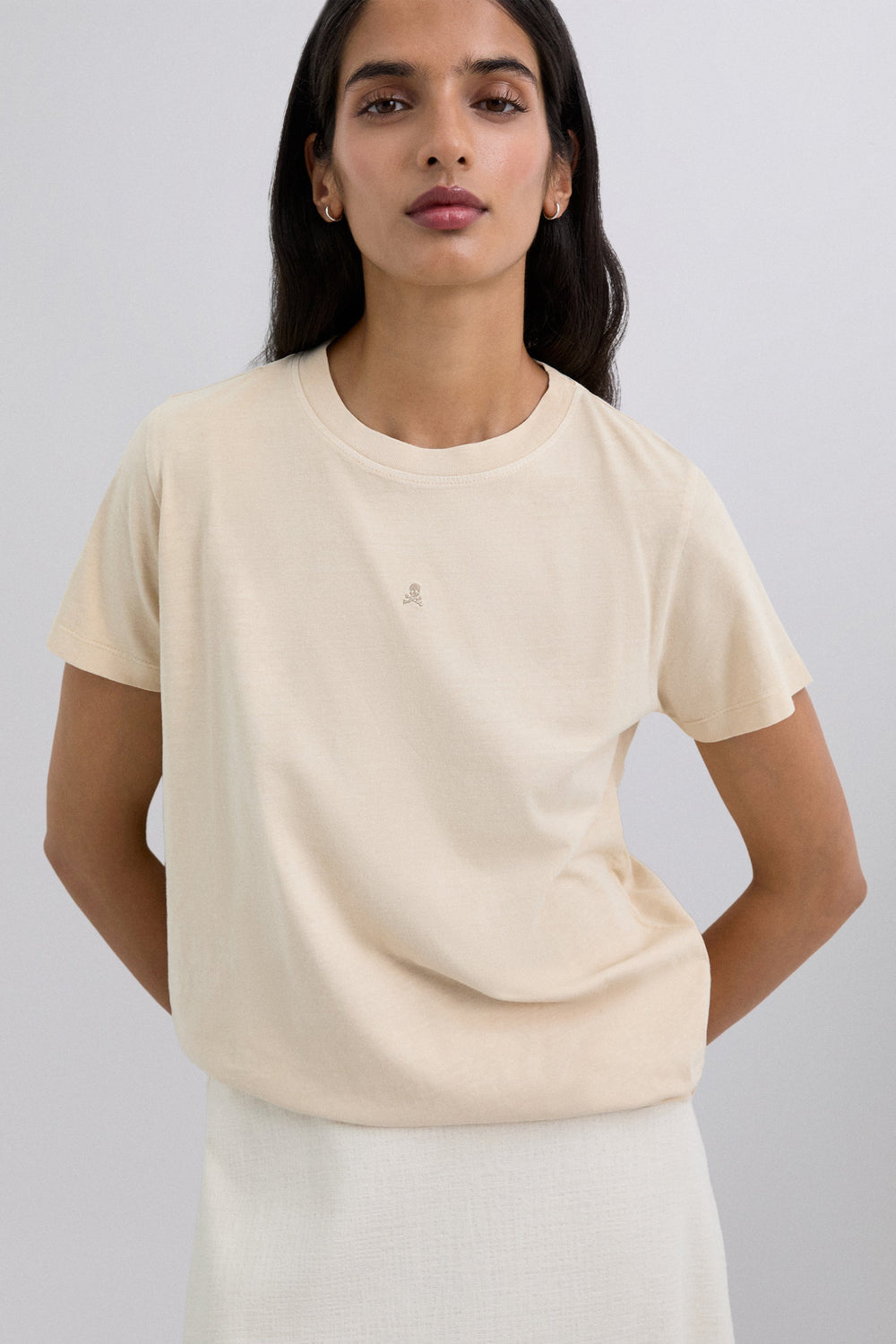 Basic T-shirt made of 100% organic cotton. Regular fit, round neck and short sleeves. Embroidered logo detail on the front.