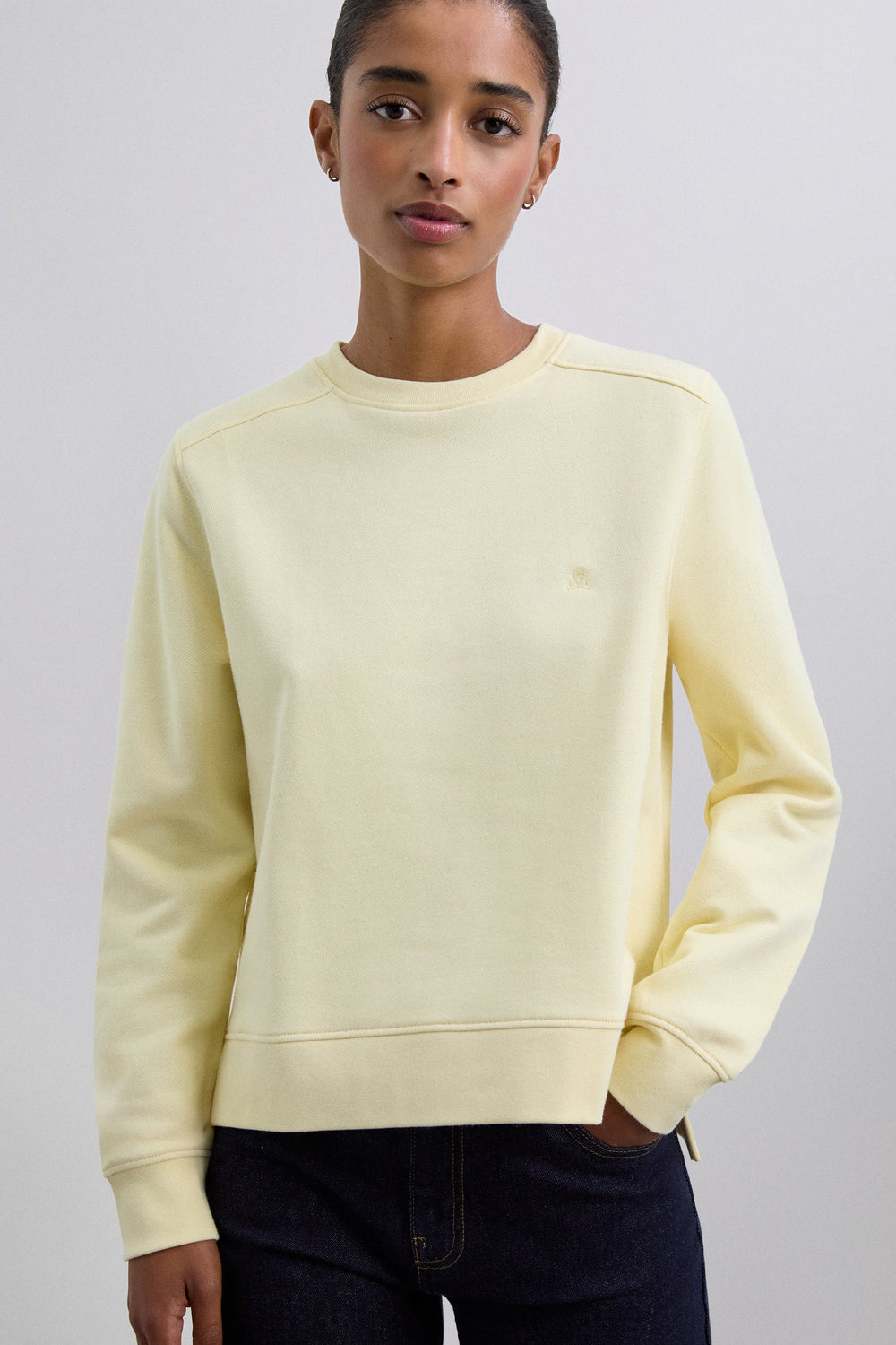 Sweatshirt made of 100% organic cotton. Regular fit, round neck and long sleeves with ribbed cuffs. Asymmetric hem, longer back. Embroidered skull detail on the chest.