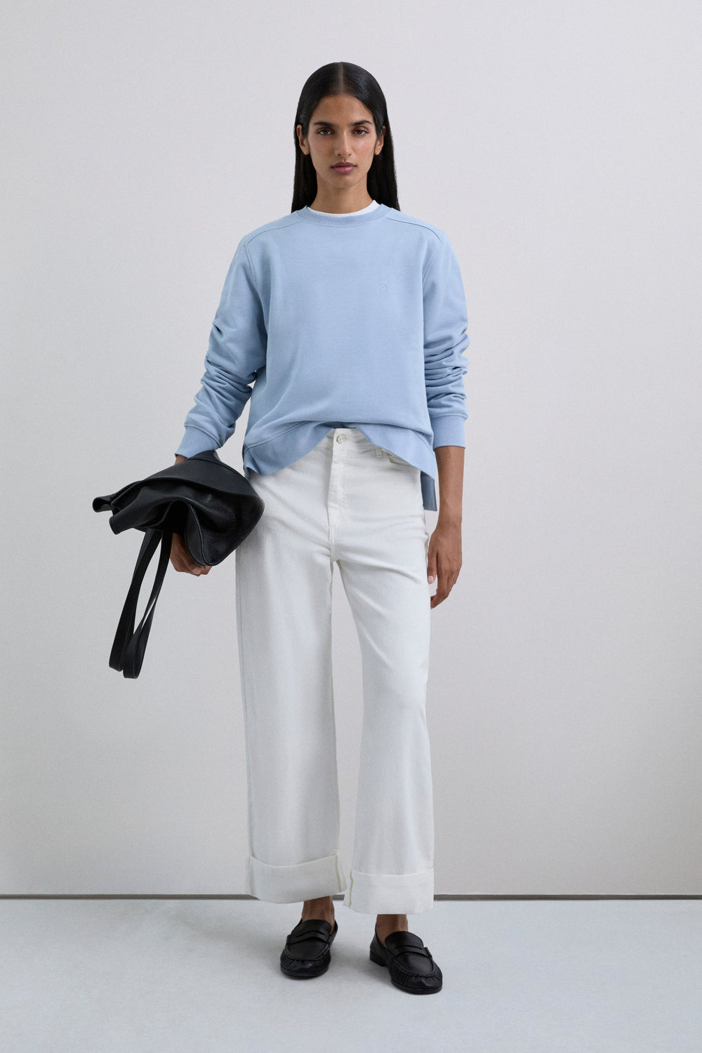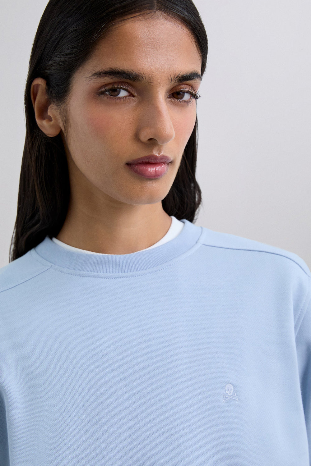 Sweatshirt made of 100% organic cotton. Regular fit, round neck and long sleeves with ribbed cuffs. Asymmetric hem, longer back. Embroidered skull detail on the chest.