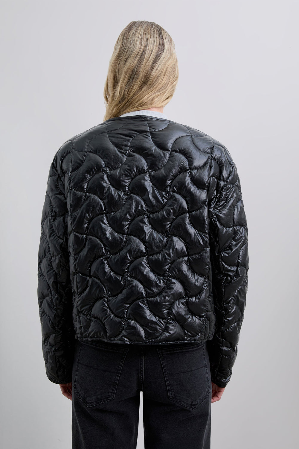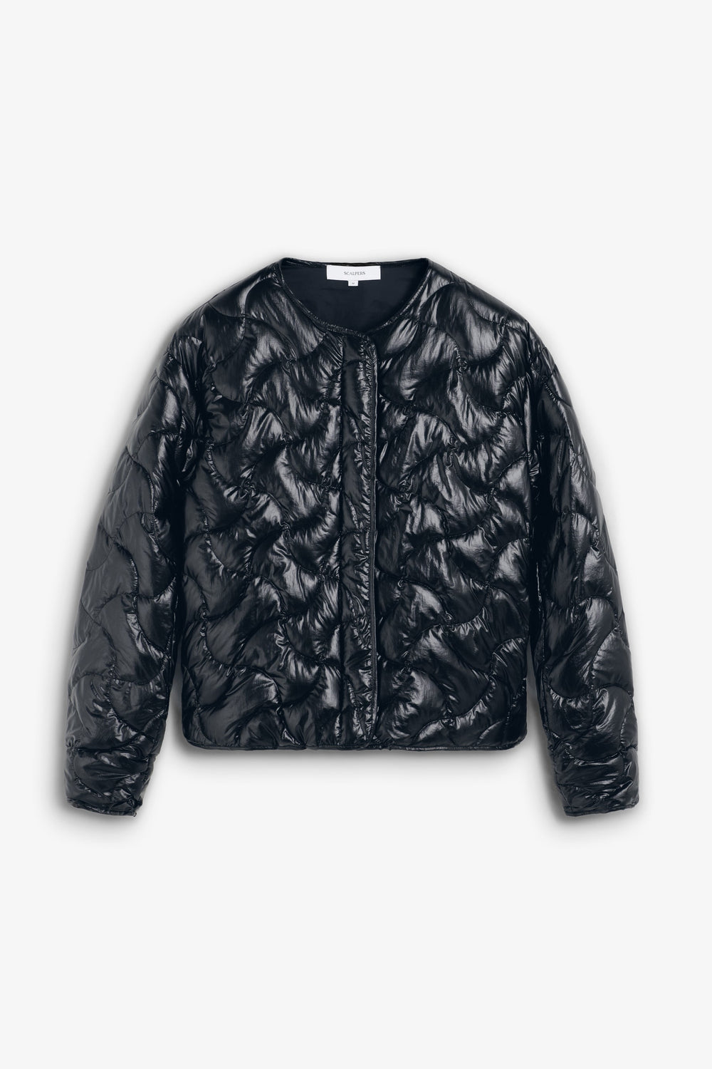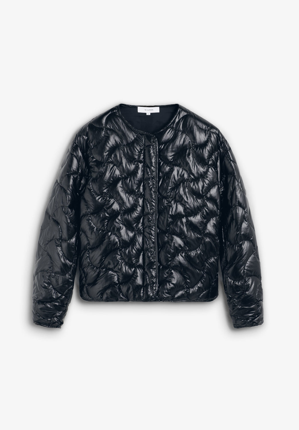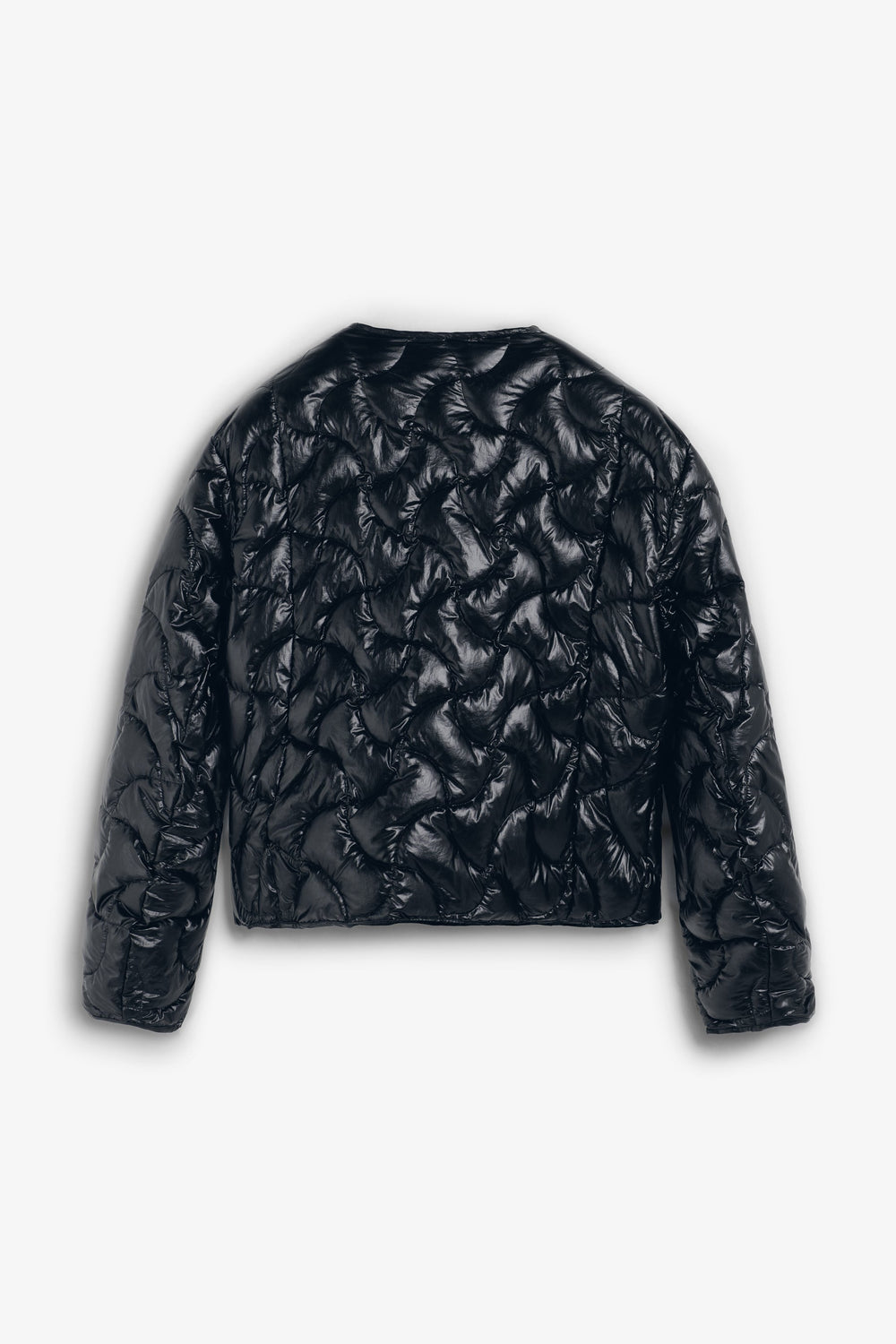 Regular fit puffer jacket. Round neck. Long sleeves. Snap-button fastening and zip at front. Rounded hem. Piped detailing around sleeves, pockets and hem.