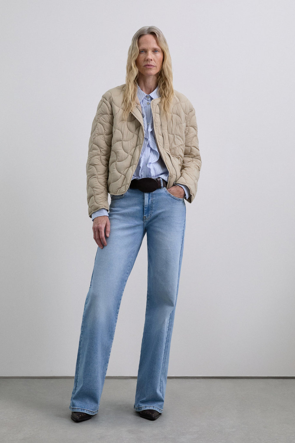 Regular fit puffer jacket. Round neck. Long sleeves. Snap-button fastening and zip at front. Rounded hem. Piped detailing around sleeves, pockets and hem.