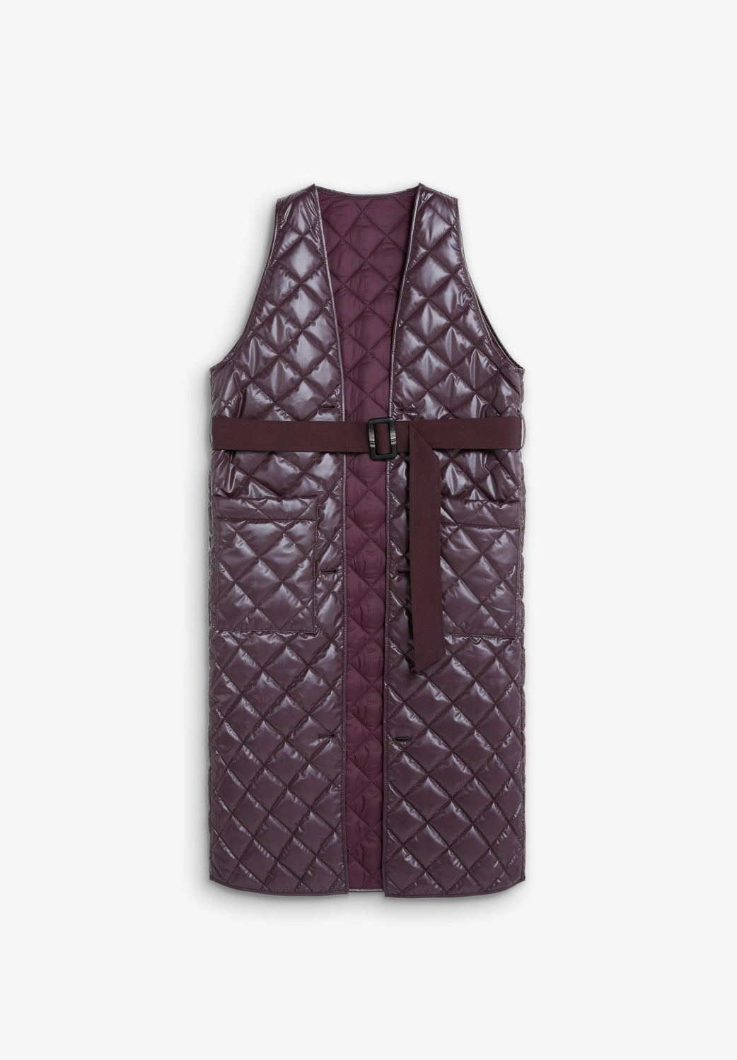 Waterproof trench coat. Slightly oversize. Collar with button fastening and front fastening with buttons and belt. Long sleeves. Detachable puffer vest.