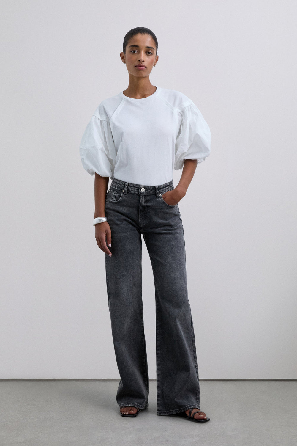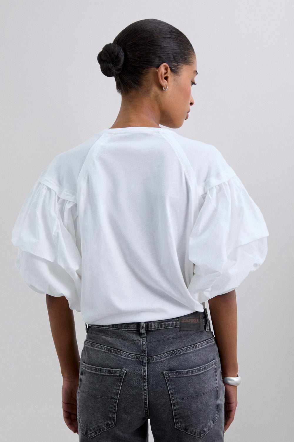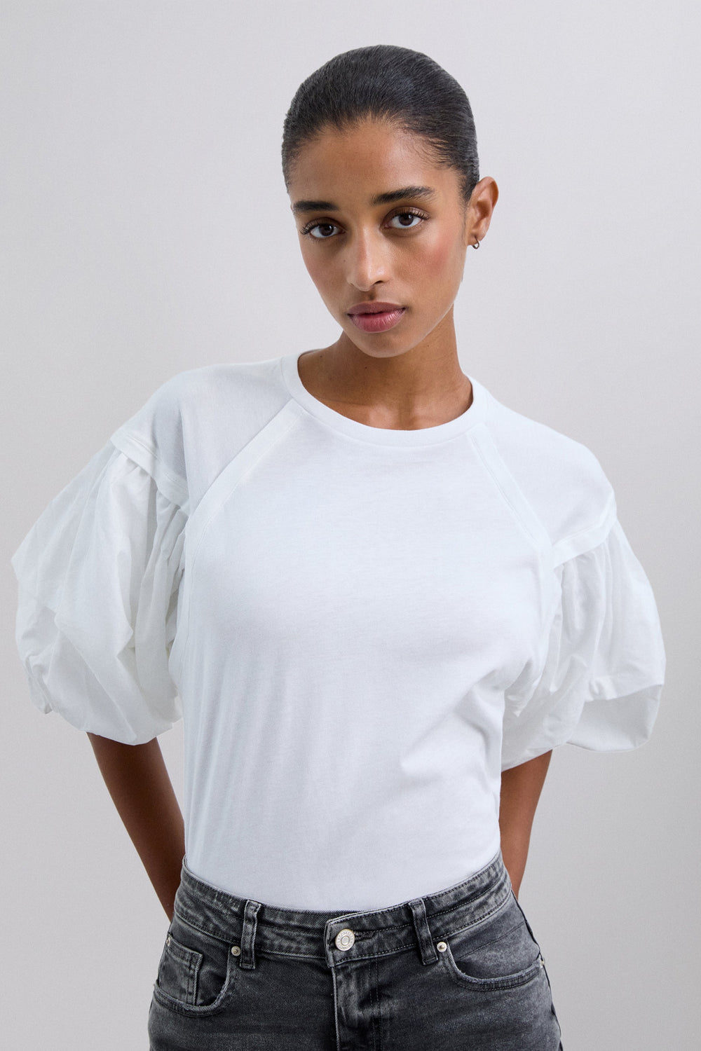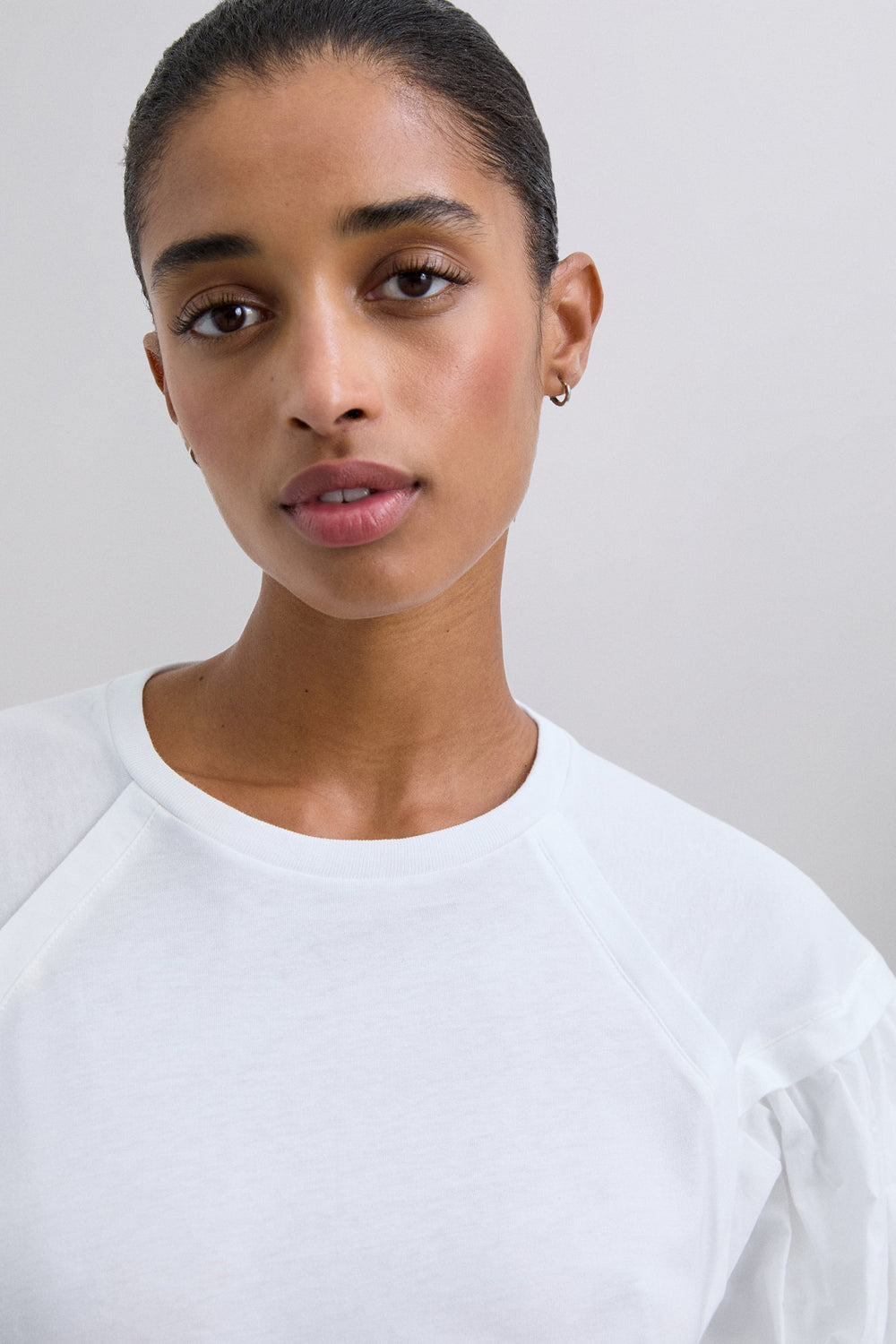 T-shirt made of 100% BCI cotton. Regular fit, round neck and long puff sleeves.