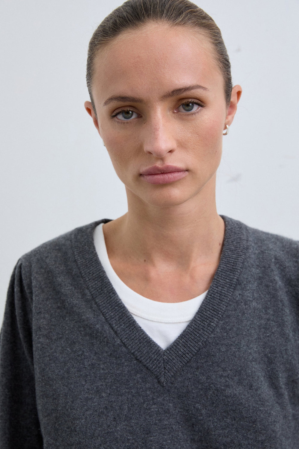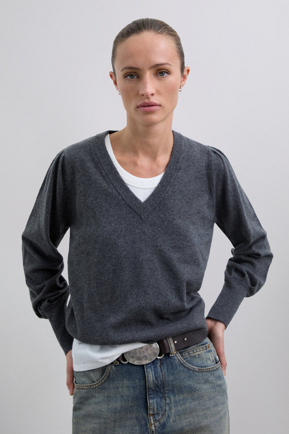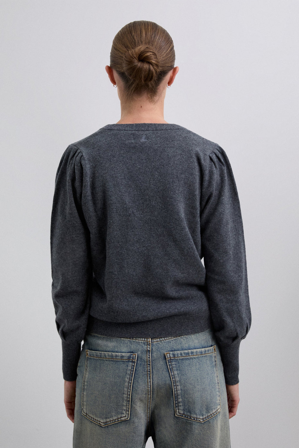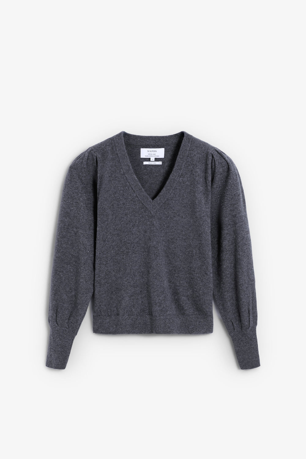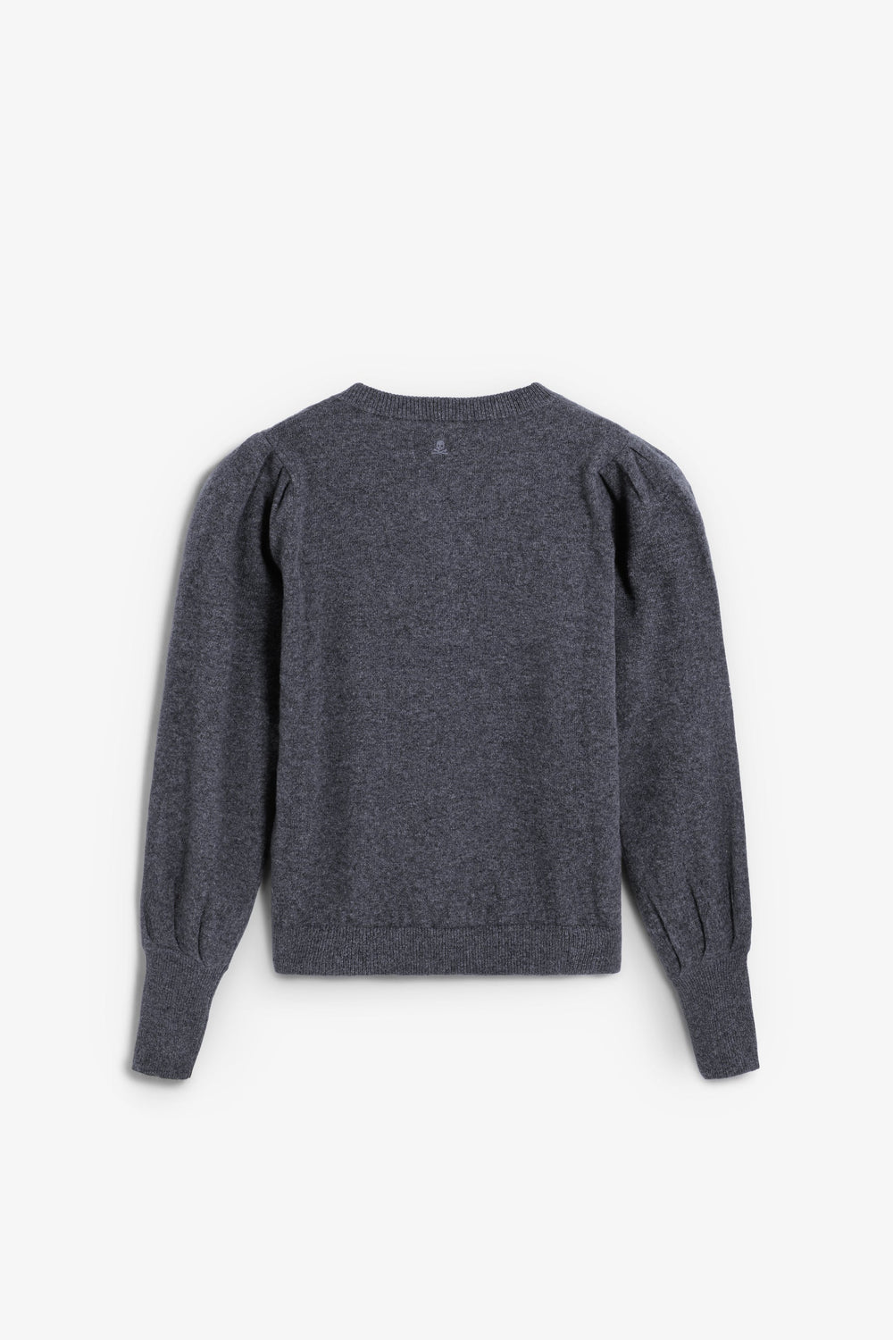 Sweater made of a wool blend with V-neck. Regular fit. Long, slightly puffed sleeves with ribbed cuffs. Matching embroidered skull detail on the back.
