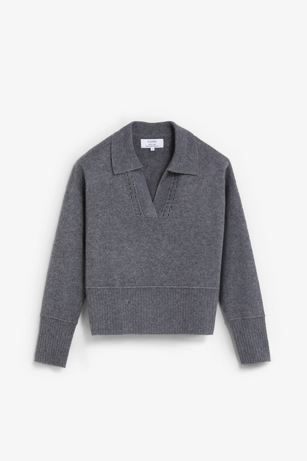 Polo shirt-style sweater made of a wool and cashmere blend. Polo shirt-style collar with cutout detailing. Regular fit. Long sleeves with ribbed cuffs. Ribbed hem with embossed detailing.