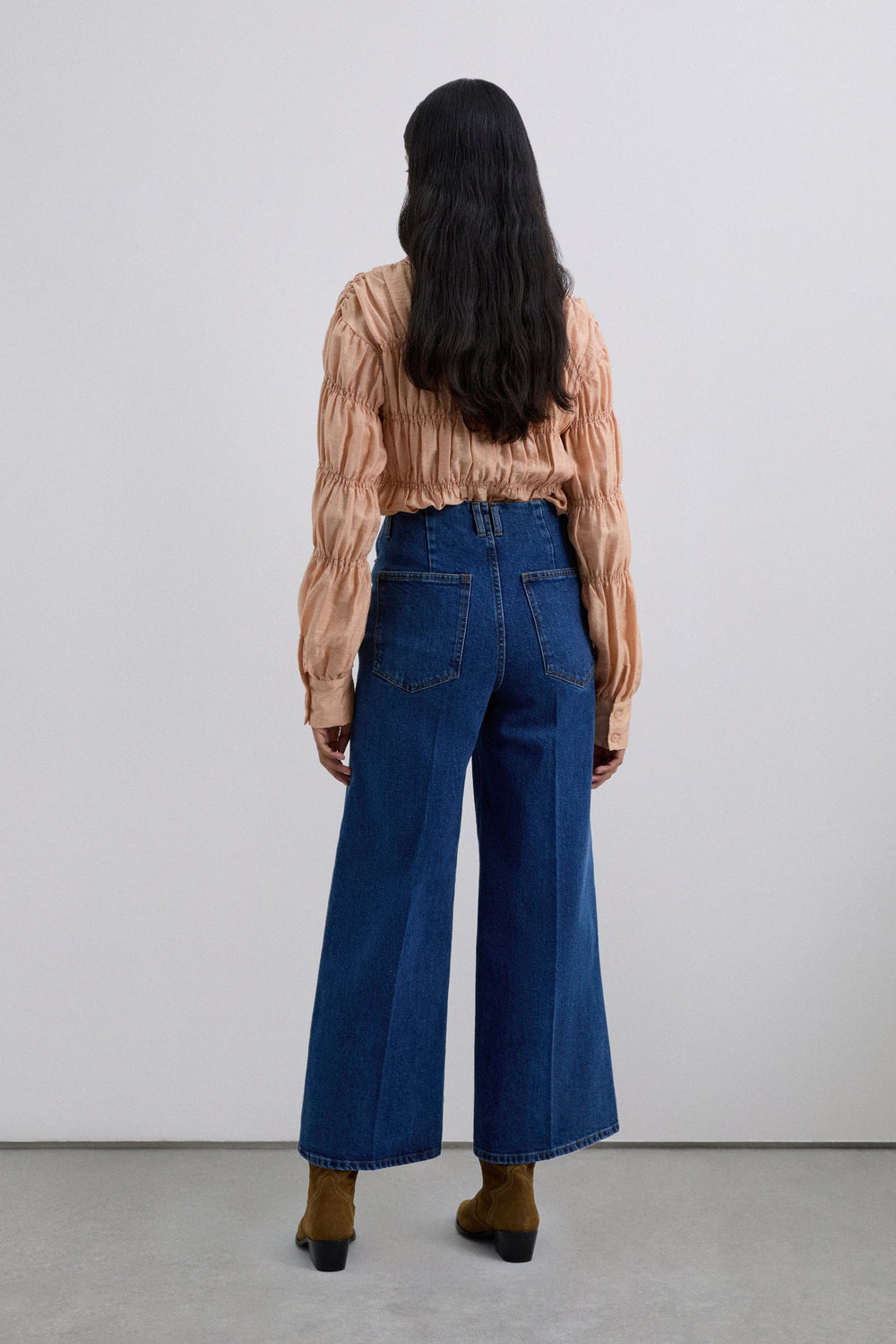 Jeans made of a slightly stretch cotton fabric. Culottes with high waist and zip and button fastening. Front and back pockets.