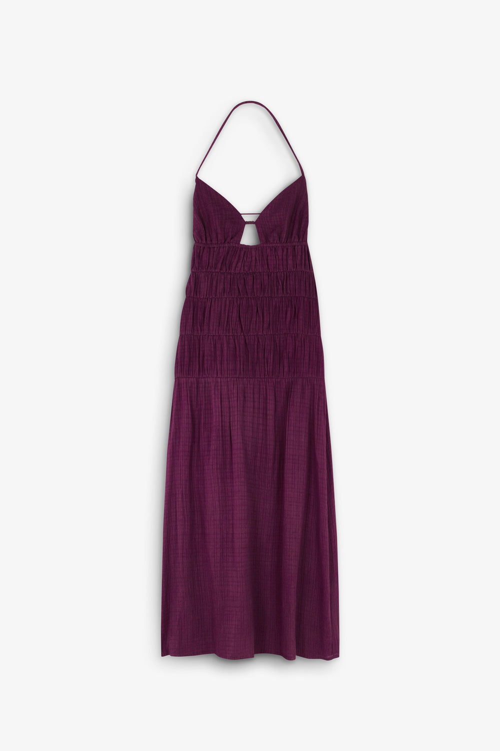 This dress is designed in collaboration with Scalpers and belongs to the ROBIN x SCALPERS collection. Midi dress made of 100% organic BCI cotton. V-neckline with cut out and matching beaded detail. Draped fabric on chest with elastics. Lace trim detail. Adjustable fastening with straps at the back.